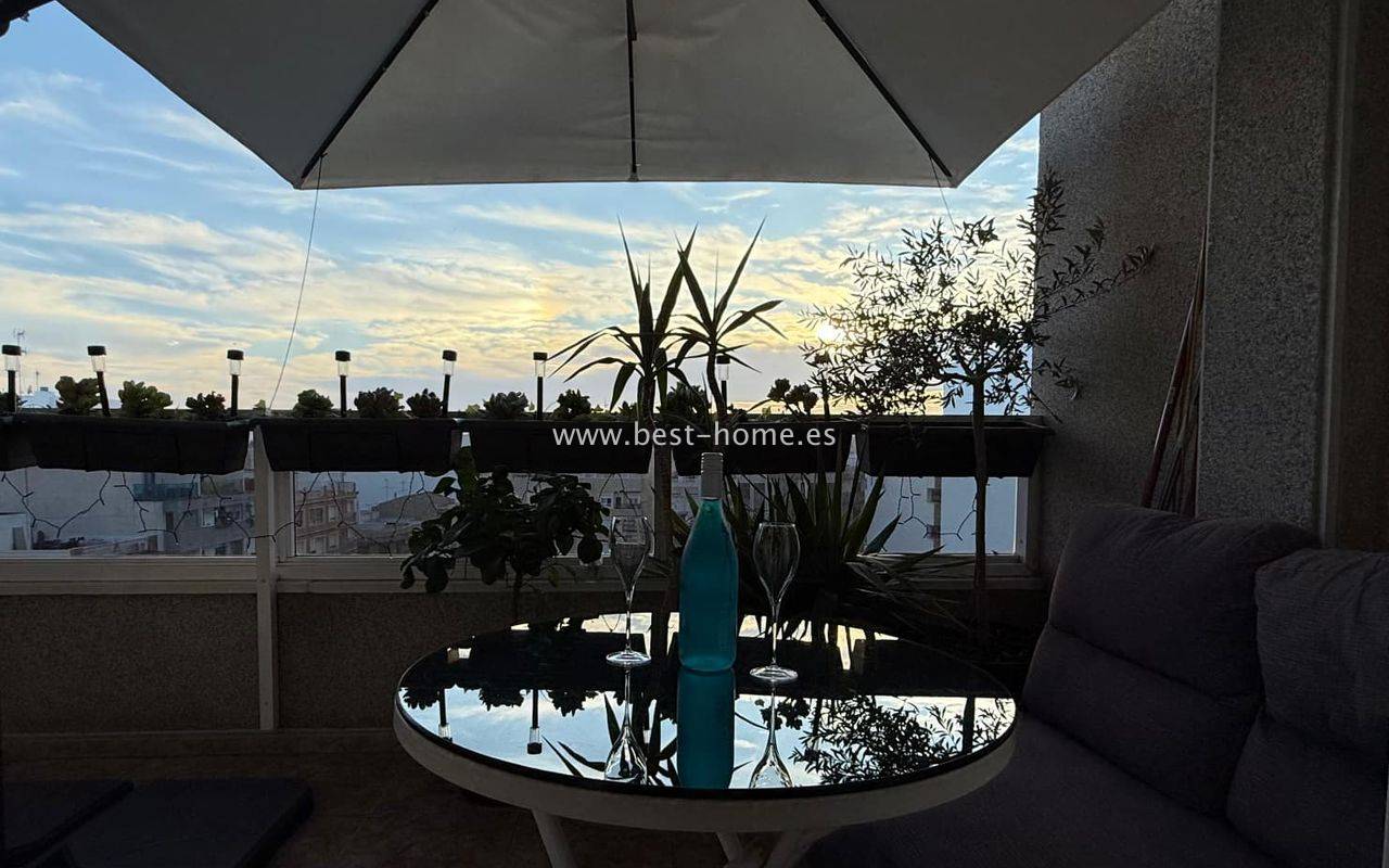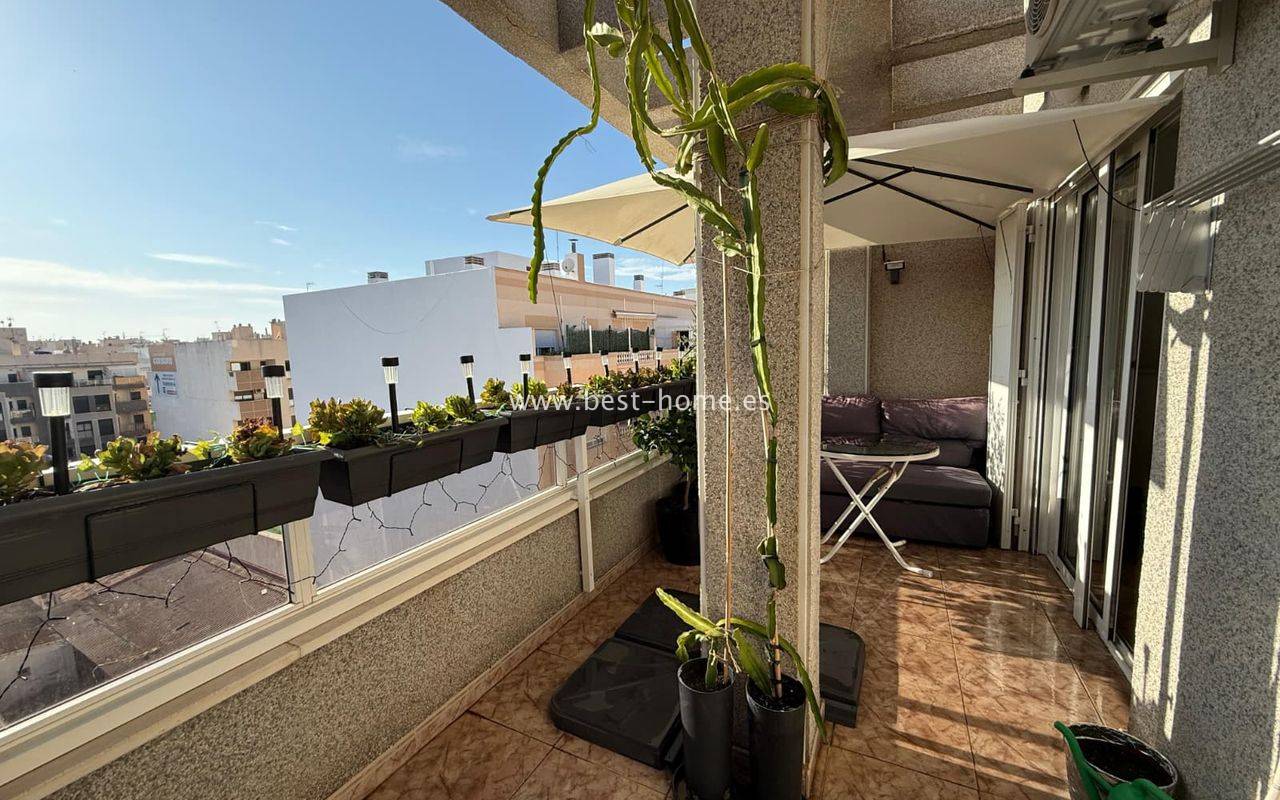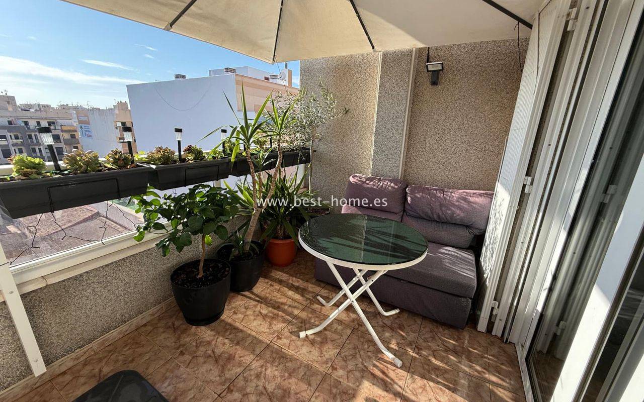 Penthouse z ogromnym tarasem, blisko centrum, przy jednej z głównych ulic w Torrevieja. Posiada salon z wyjściem na duży taras, kuchnie wyposażóna w sprzet AGD, 1 dwuosobową sypialnię, łazienkę. Mieszkanie jest umeblowane. W pobliżu znajduje się duża ilość barów, kawiarni i restauracji