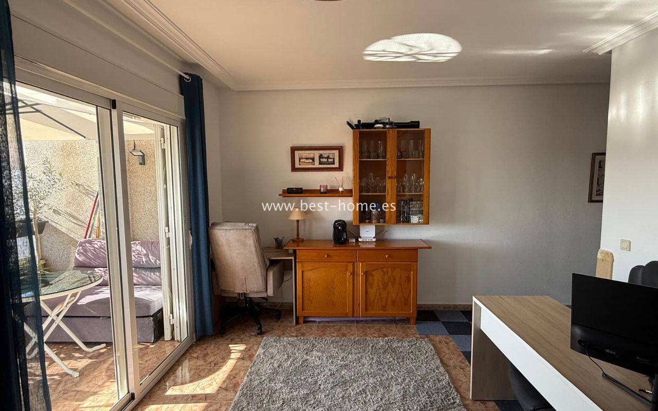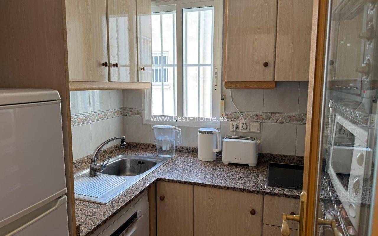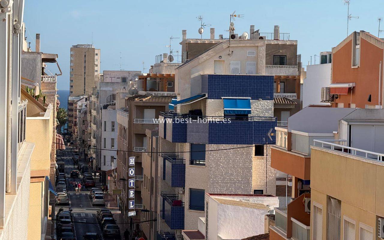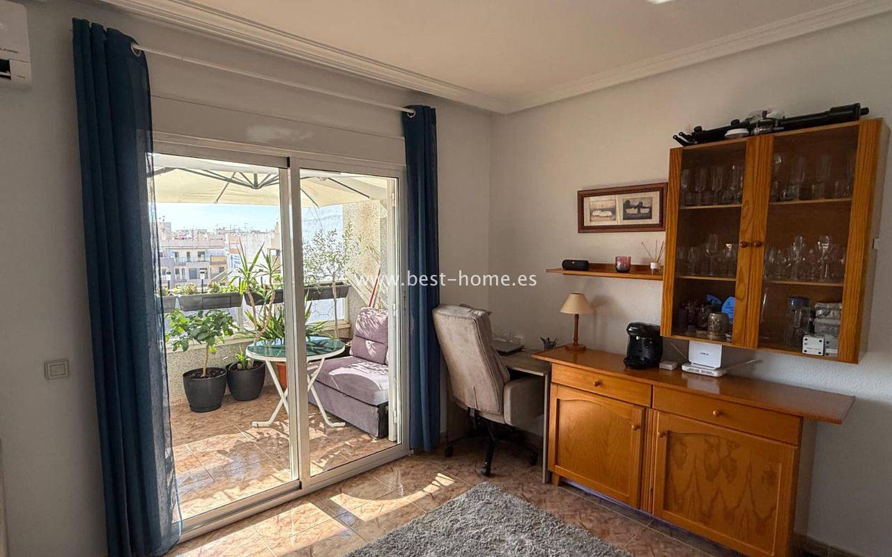 Penthouse z ogromnym tarasem, blisko centrum, przy jednej z głównych ulic w Torrevieja. Posiada salon z wyjściem na duży taras, kuchnie wyposażóna w sprzet AGD, 1 dwuosobową sypialnię, łazienkę. Mieszkanie jest umeblowane. W pobliżu znajduje się duża ilość barów, kawiarni i restauracji