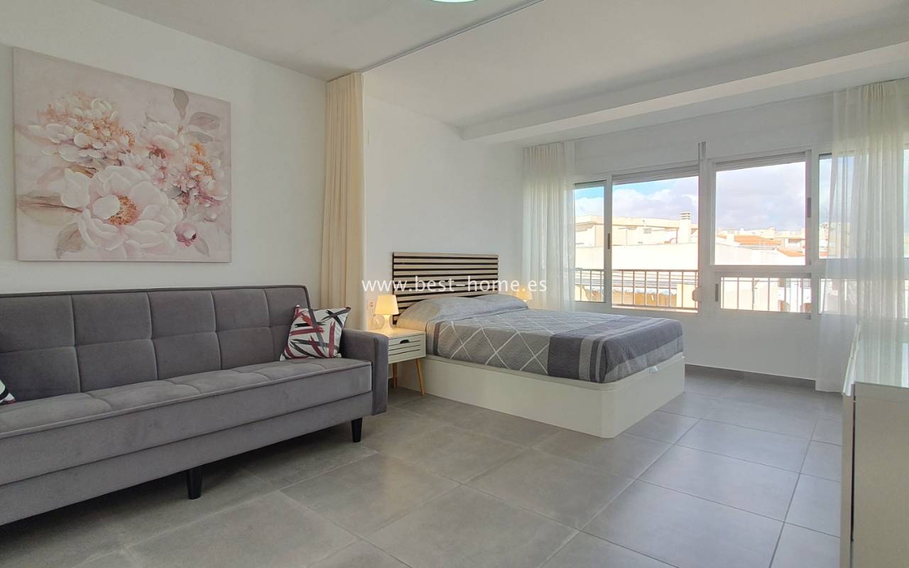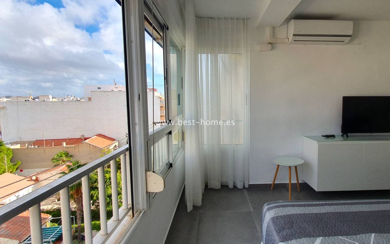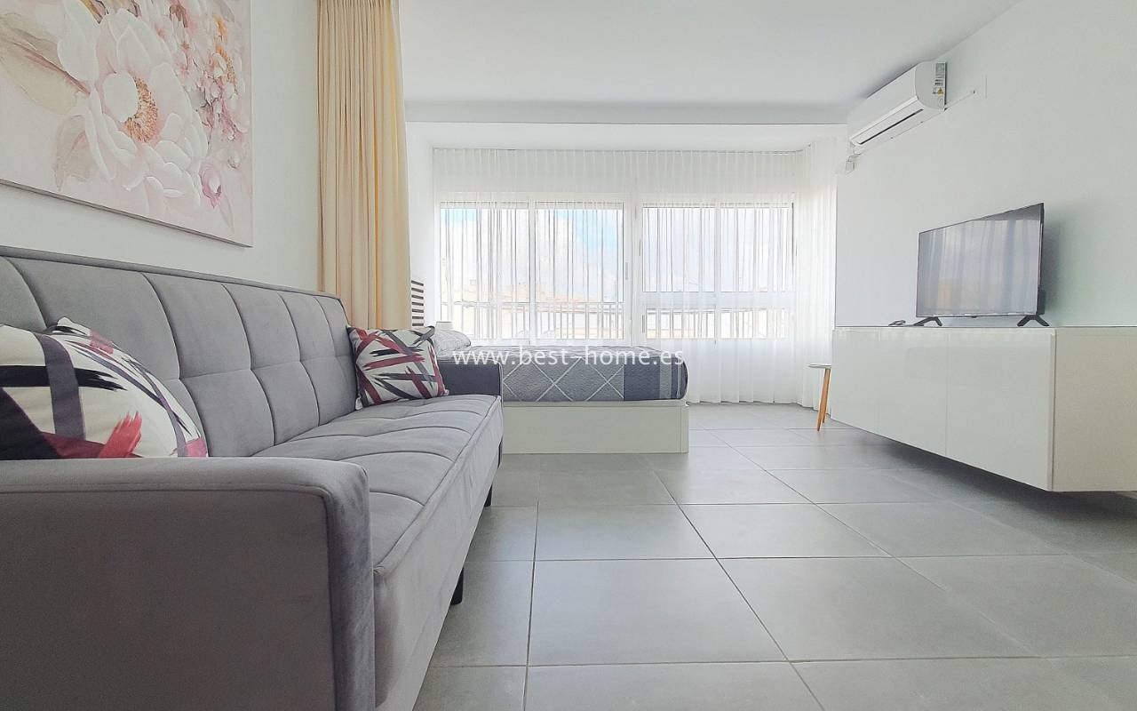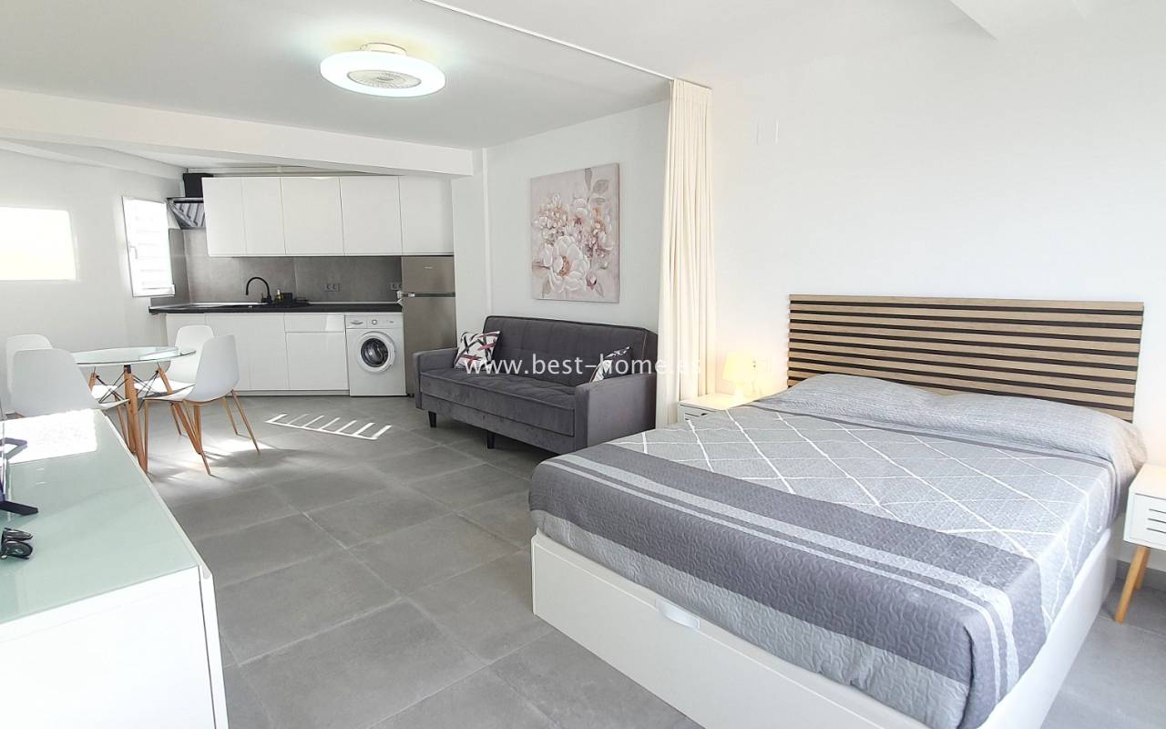 Kompletnie wyremontowana i bardzo przestronna kawalerka położona jest w 1 linii brzegowej od nadmorskiej promenady i plaży Los Locos. Nieruchomość jest na 7 najwyższym piętrze, składa się z korytarza wejściowego, gdzie odnajdziemy dwie szafy, łazienki z prysznicem, nowoczesnej kuchni/jadalni połączonej z salonem/sypialnią. Mieszkanie po kompletnym remoncie, ładnie i gustownie umeblowane, komfortowe dla 4 osób. W cenie umeblowanie, sprzęt AGD, pełne wyposażenie kuchni, pościele i ręczniki.