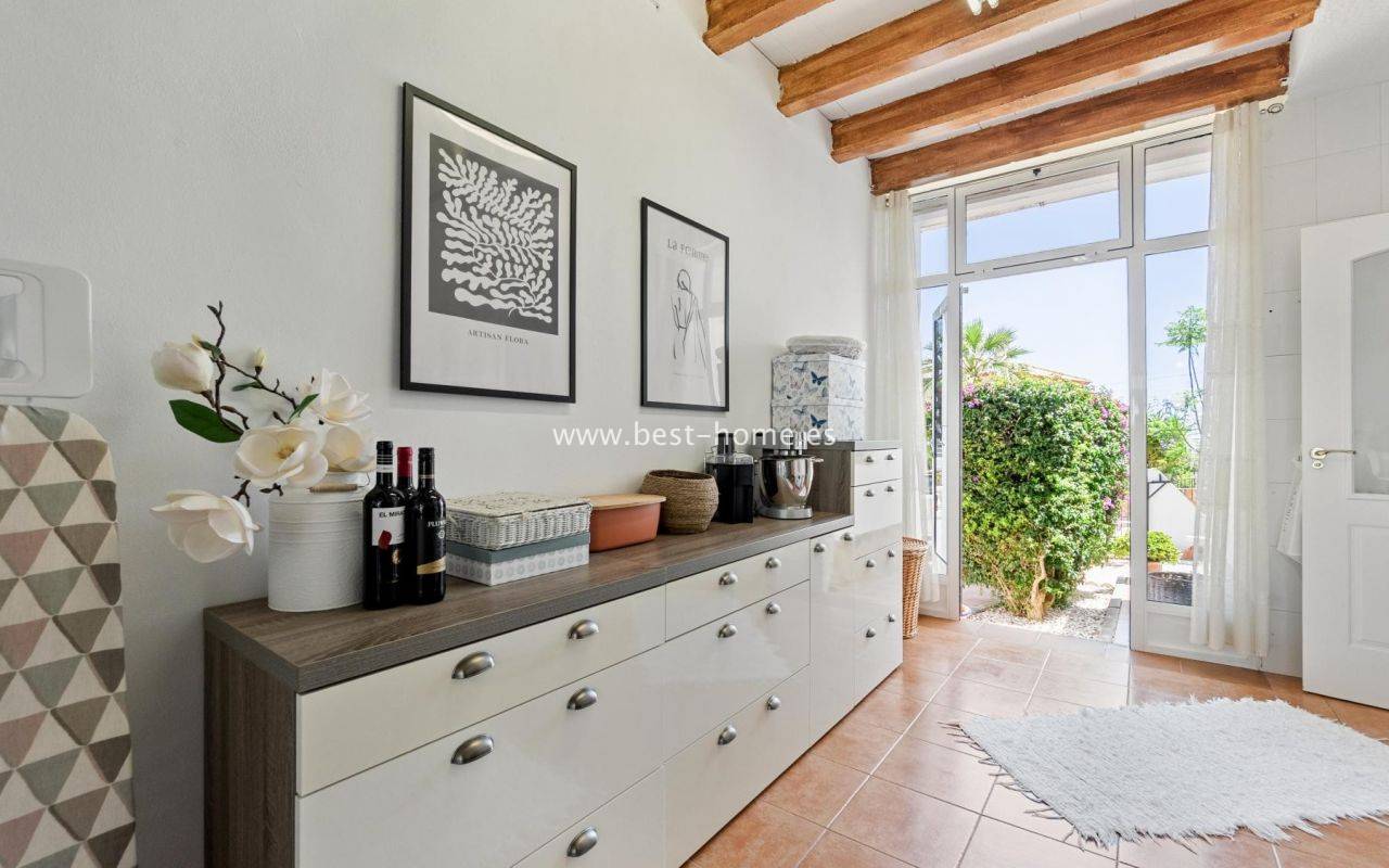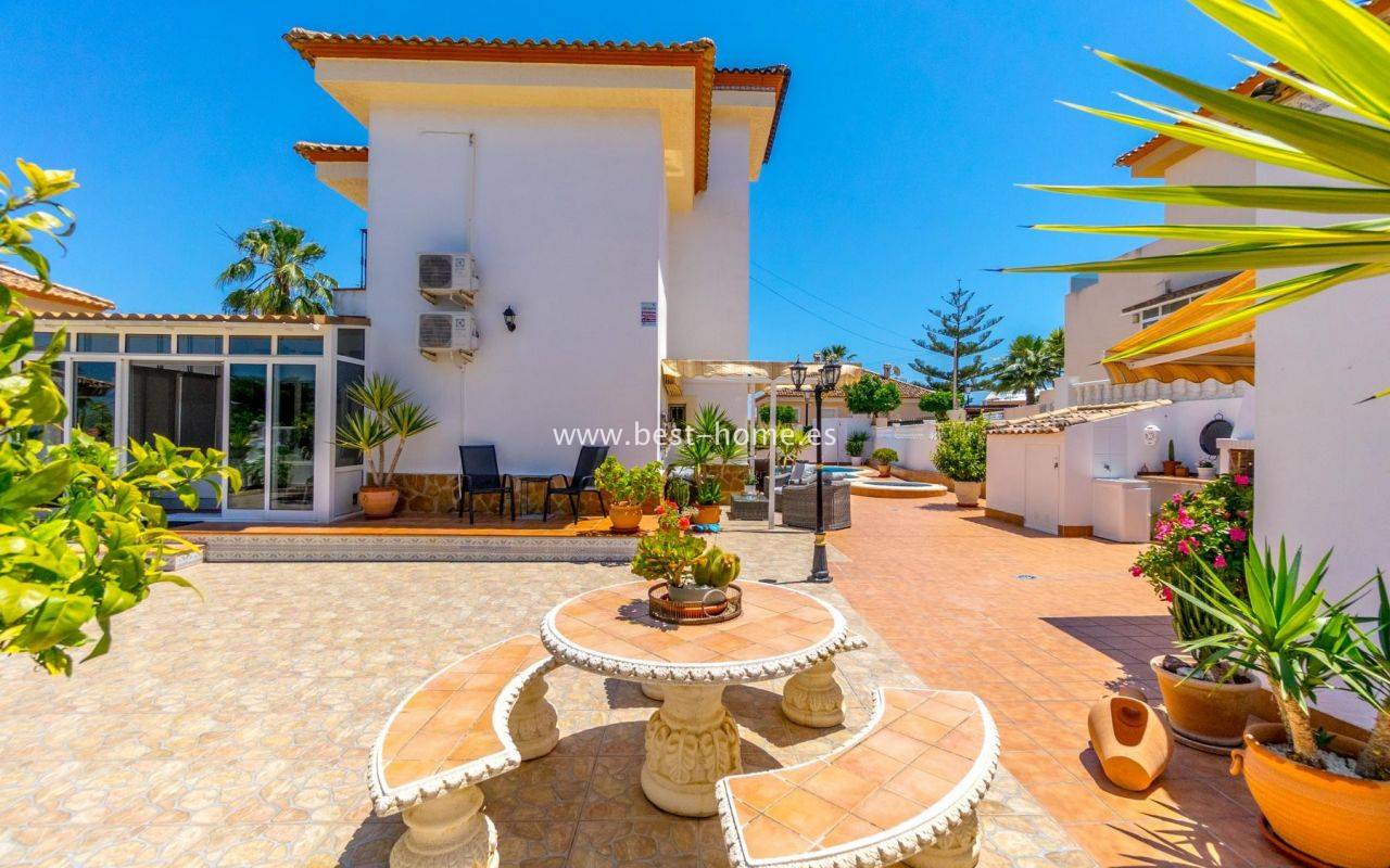 Na obrzeżach San Miguel de Salinas, w spokojnym osiedlu domków jednorodzinnych, znajduje się dom z pięknym widokiem na morze, oddalony jedynie o 10 km od piaszczystych plaż Orihuela Costa. Na terenie działki do dyspozycji jest basen oraz jacuzzi, które zapewniają idealne warunki do wypoczynku. Dom składa się z czterech sypialni, dwóch łazienek oraz dodatkowego WC, a także posiada garaż oraz podjazd na auto, co gwarantuje wygodę codziennego użytkowania.