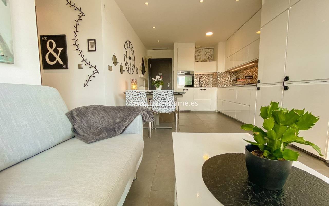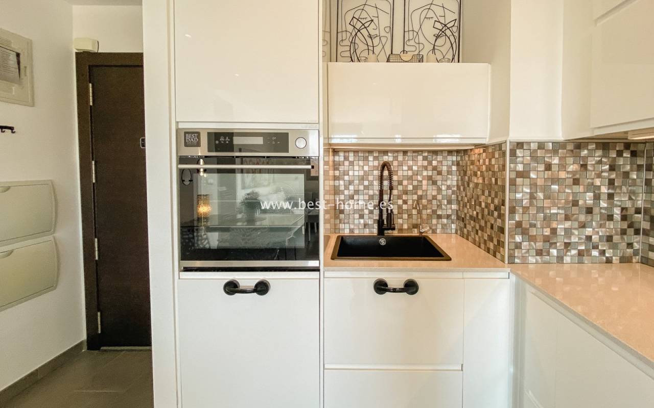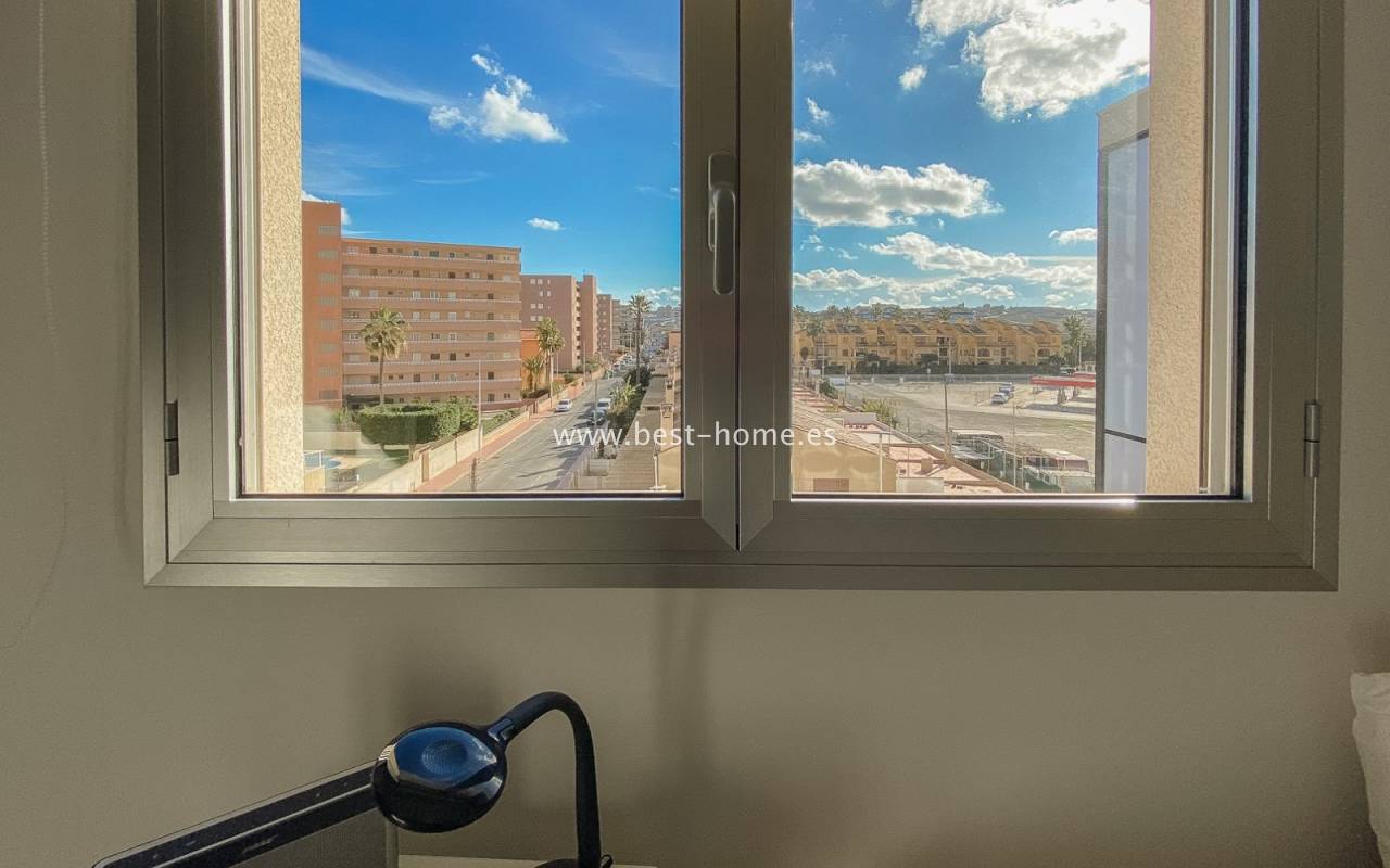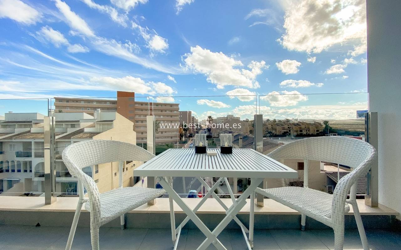 Fantastyczny apartament położony jest w świetnej lokalizacji przy plaży La Mata. Nieruchomość jest na 3 piętrze, składa się z dwóch sypialni z wbudowanymi szafami, dwóch łazienek, umeblowanej kuchni połączonej z jadalnią i salonem. Z salonu jest wyjście na słoneczny taras, z którego mamy wspaniały widok na morze, park i okolicę. W cenie sprzęt AGD, centralna klimatyzacja i miejsce parkingowe. Na terenie osiedla jest wspaniały basen. W pobliżu ogromny wybór restauracji, barów i kawiarni.