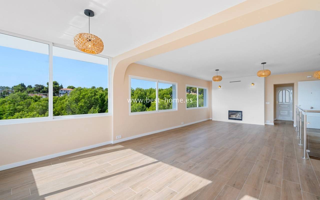 Jasna i przestronna willa po całkowitej renowacji w 2025 roku, łączy nowoczesny komfort z urokiem śródziemnomorskiego stylu. Położona w spokojnej okolicy, a jednocześnie dobrze skomunikowana, oferuje piękne widoki na morze oraz otaczającą naturę. Dom ma 216 m² powierzchni zabudowanej i znajduje się na dużej działce o powierzchni 1.268 m² (zgodnie z rejestrem).