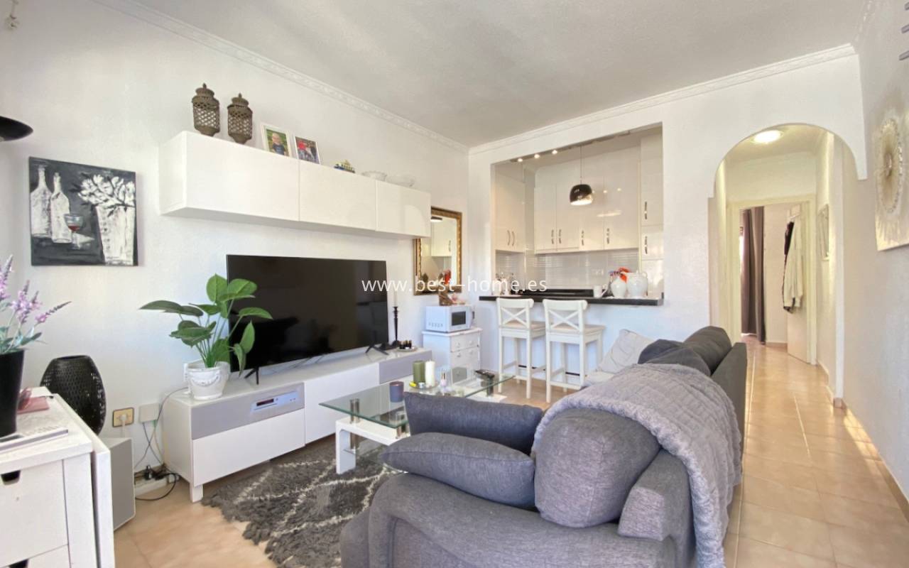 Apartament w dobrej cenie na 1 piętrze z dwoma tarasami na osiedlu Los Frutales w Torrevieja. Przy wejściu znajduje się przeszklony taras, na którym można odpocząć i cieszyć się nim przez cały rok. Następnie znajduje się przestronny salon z kuchnią w stylu amerykańskim wyposażoną w sprzęt AGD, 1 dwuosobowa sypialnia z wyjściem na drugi słoneczny taras, łazienka. Mieszkanie jest umeblowane i wyposażone w klimatyzację.