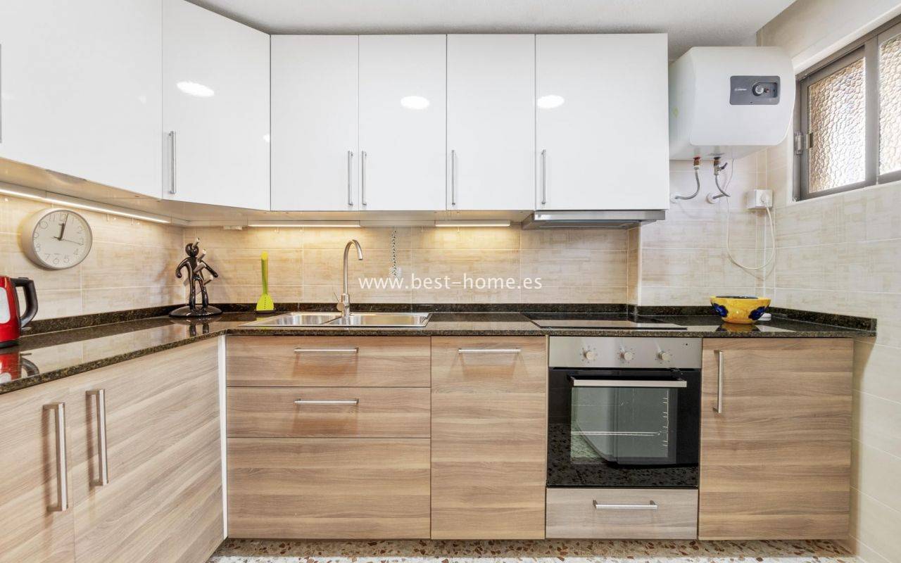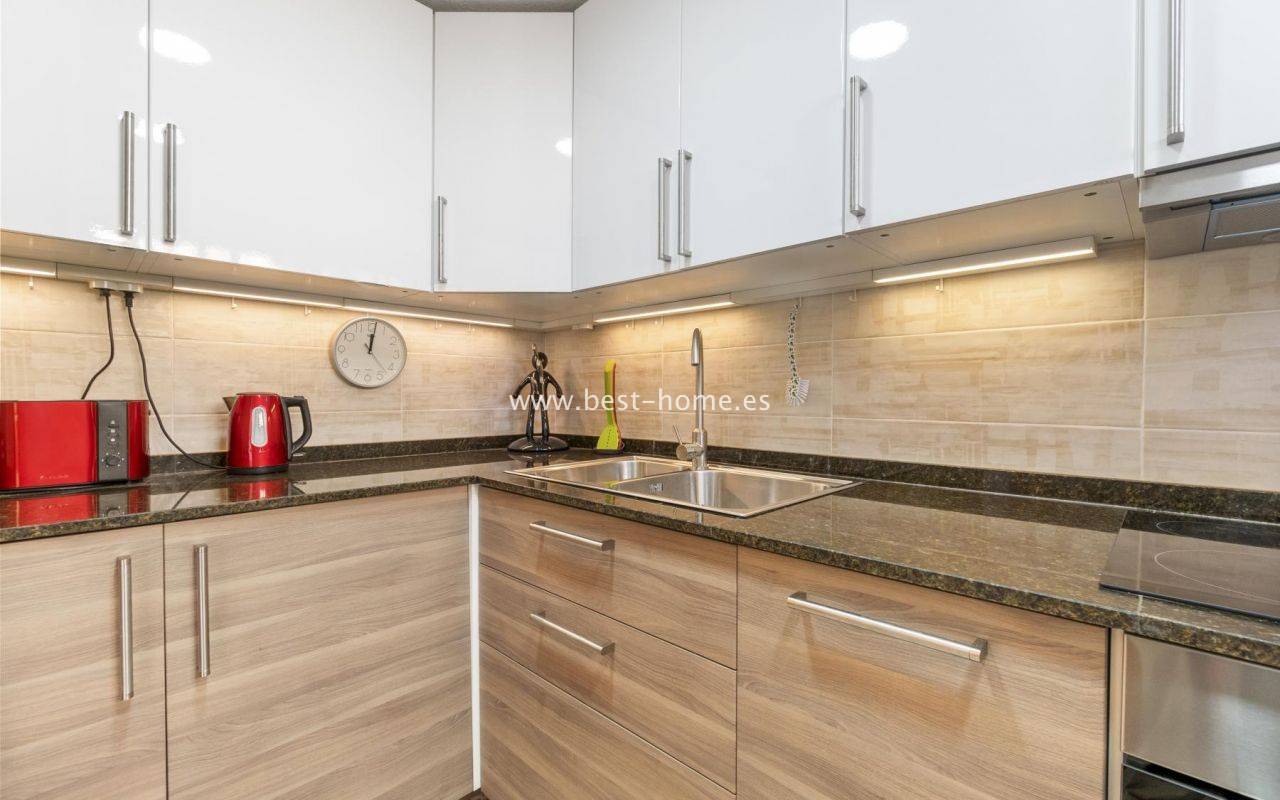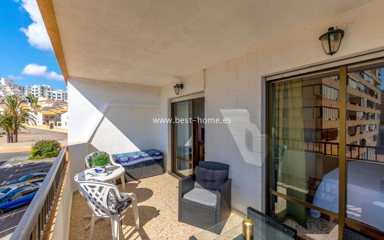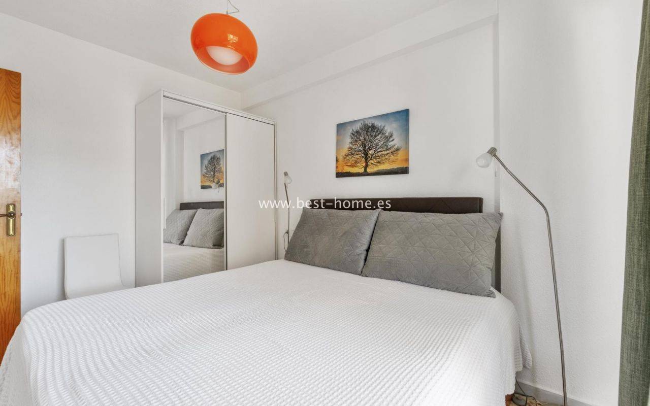 Słoneczny apartament z fantastycznym widokiem na morze i park w urbanizacji Cabo Cervera przy La Mata. Posiada salon z wyjściem na ogromny taras z orientacją południowo-zachodnią, 2 sypialnie, w tym główna dwuosobowa z szafą, oddzielną dużą kuchnię wyposażoną w sprzęt AGD, łazienkę. Mieszkanie jest umeblowane i wyposażone w klimatyzację. Idealne pod najem wakacyjny lub długoterminowy. W pobliżu znajdziemy mniejszą i wiekszą plażę, piękna promenadę ciągącą sie wzdłuż morza, restauracje, park, basen i kort tenisowy.