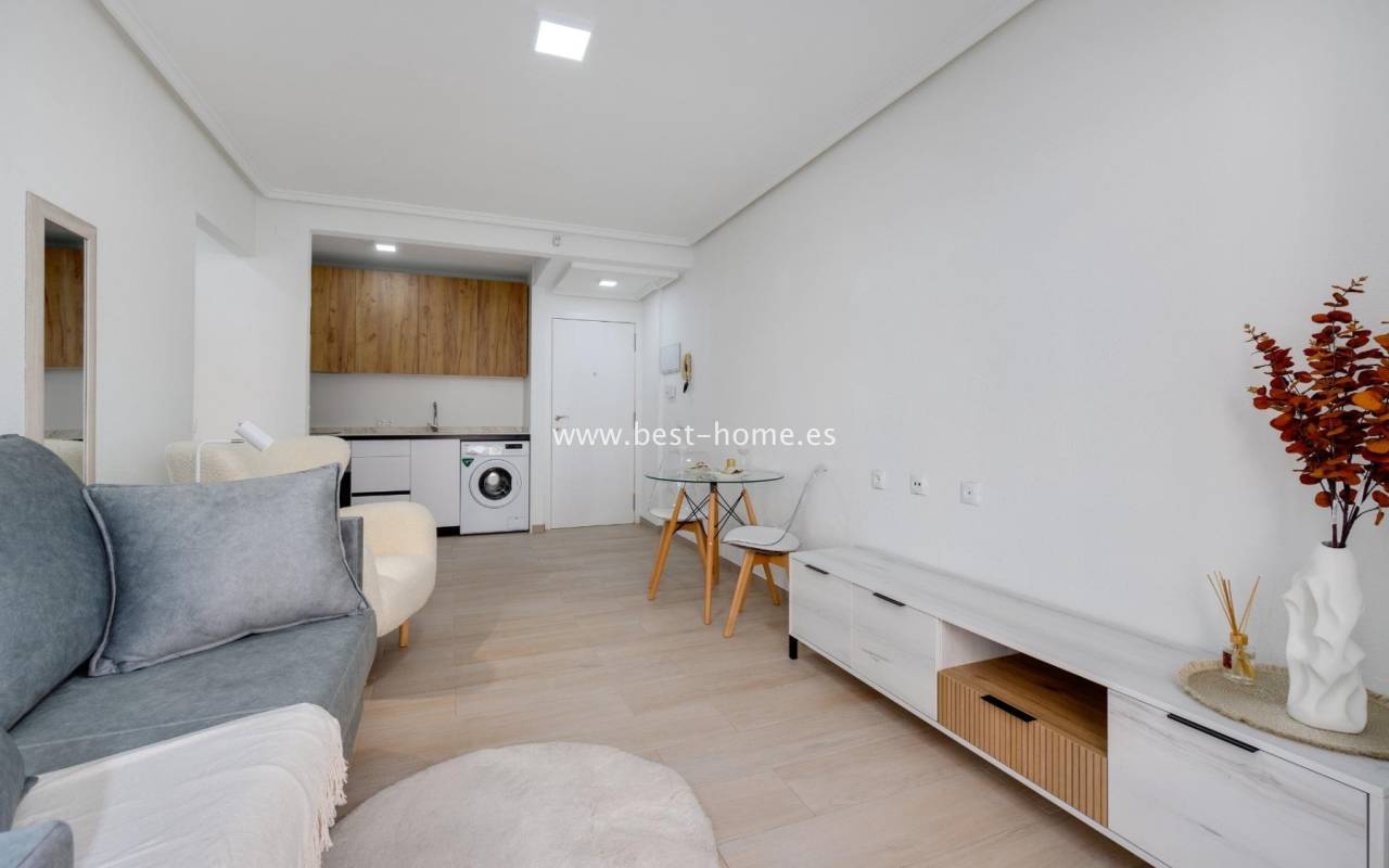 Świeżo wyremontowany apartament w Torrevieja, położony w spokojnej okolicy blisko parku i plaży. Składa się z jednej sypialni, łazienki, salonu z kuchnią oraz balkonu. Na terenie wspólnoty znajduje się duży basen i zielone tereny. W okolicy są sklepy, restauracje i wszystkie niezbędne udogodnienia.