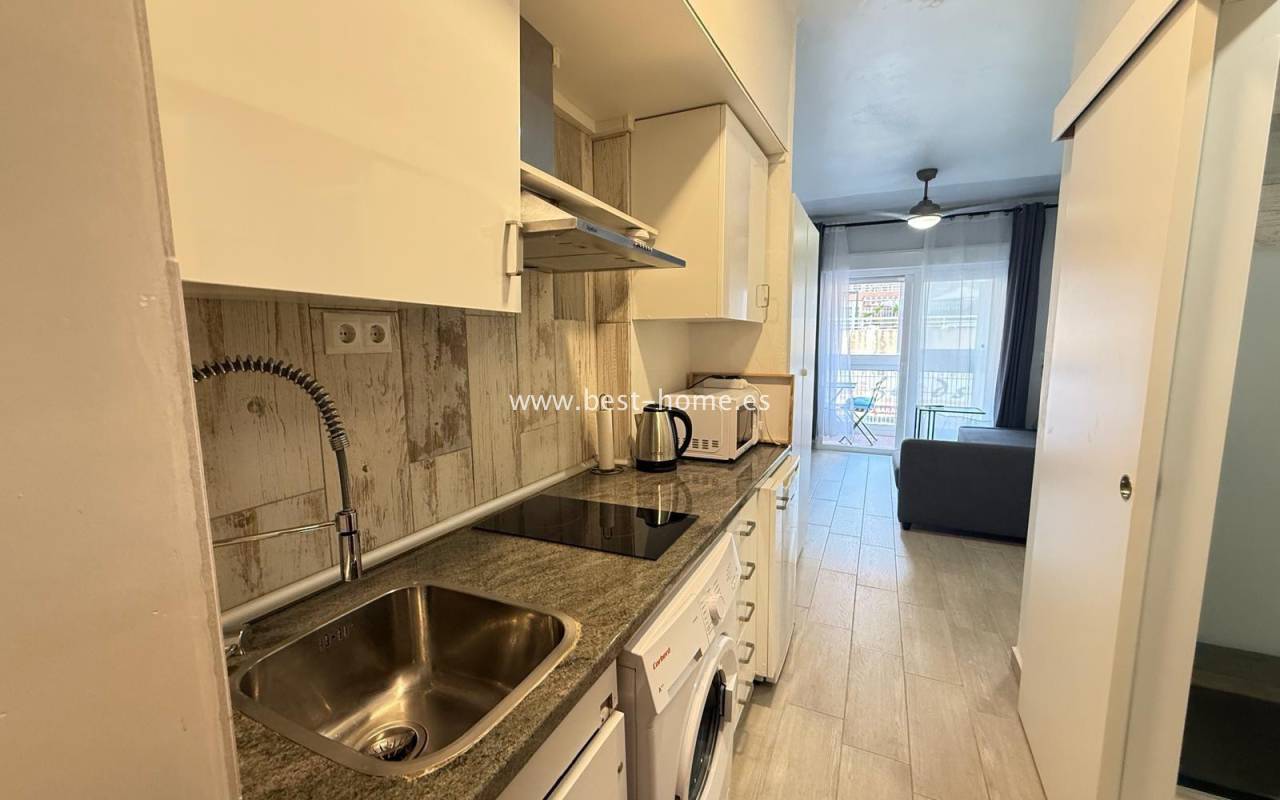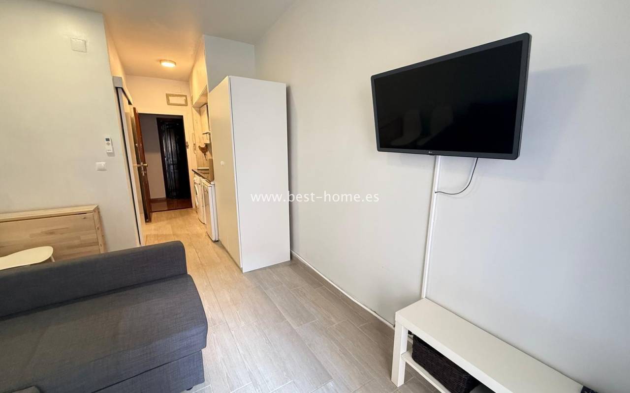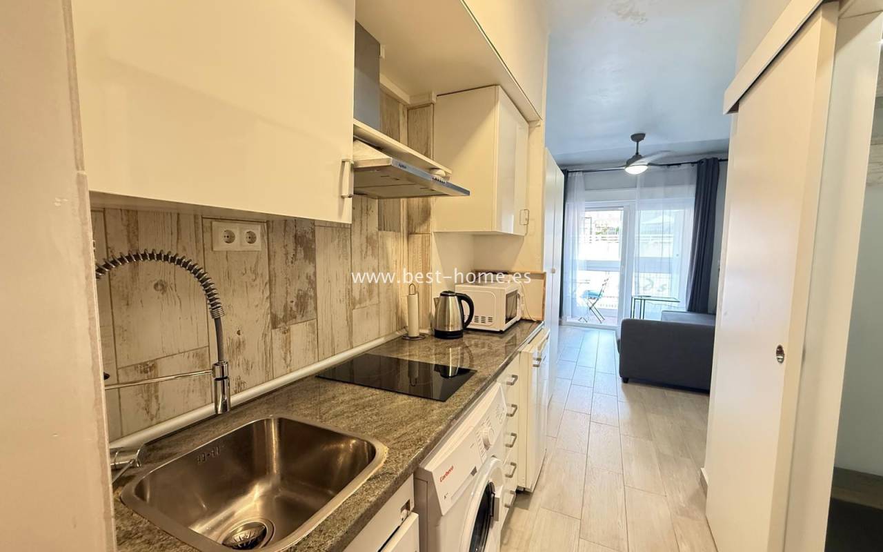 Studio blisko dwóch pięknych plaż w Torrevieja Playa Los Locos i Playa del Cura. Posiada salon z wyjściem na taras, oddzielną kuchnię wyposażona w sprzęt AGD, łazienkę. Idealne mieszkanie pod najem wakacyjny. W pobliżu znajdziemy dużą ilość knajp, restauracji, kawiarni i piękną promenadę ciągnacą się wzdłuż morza.