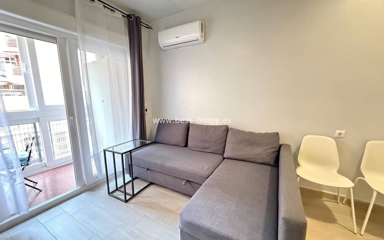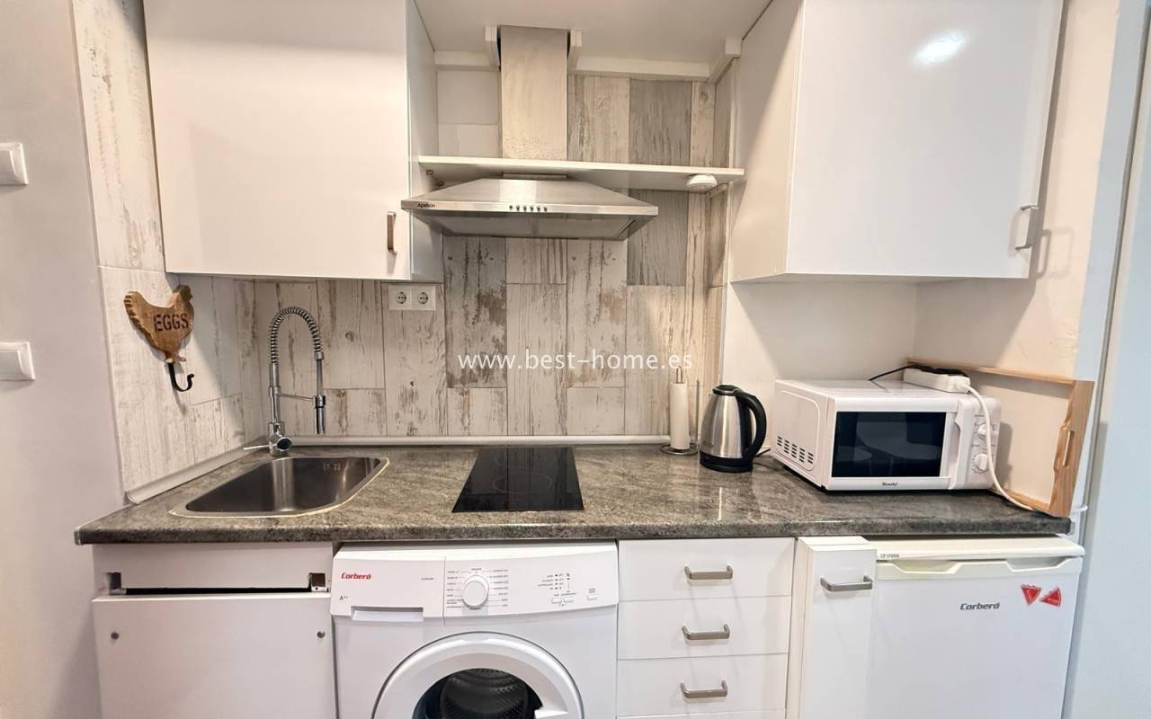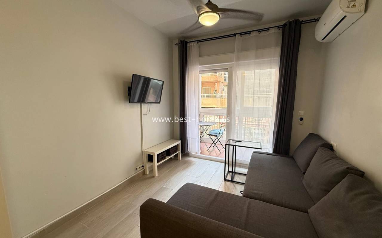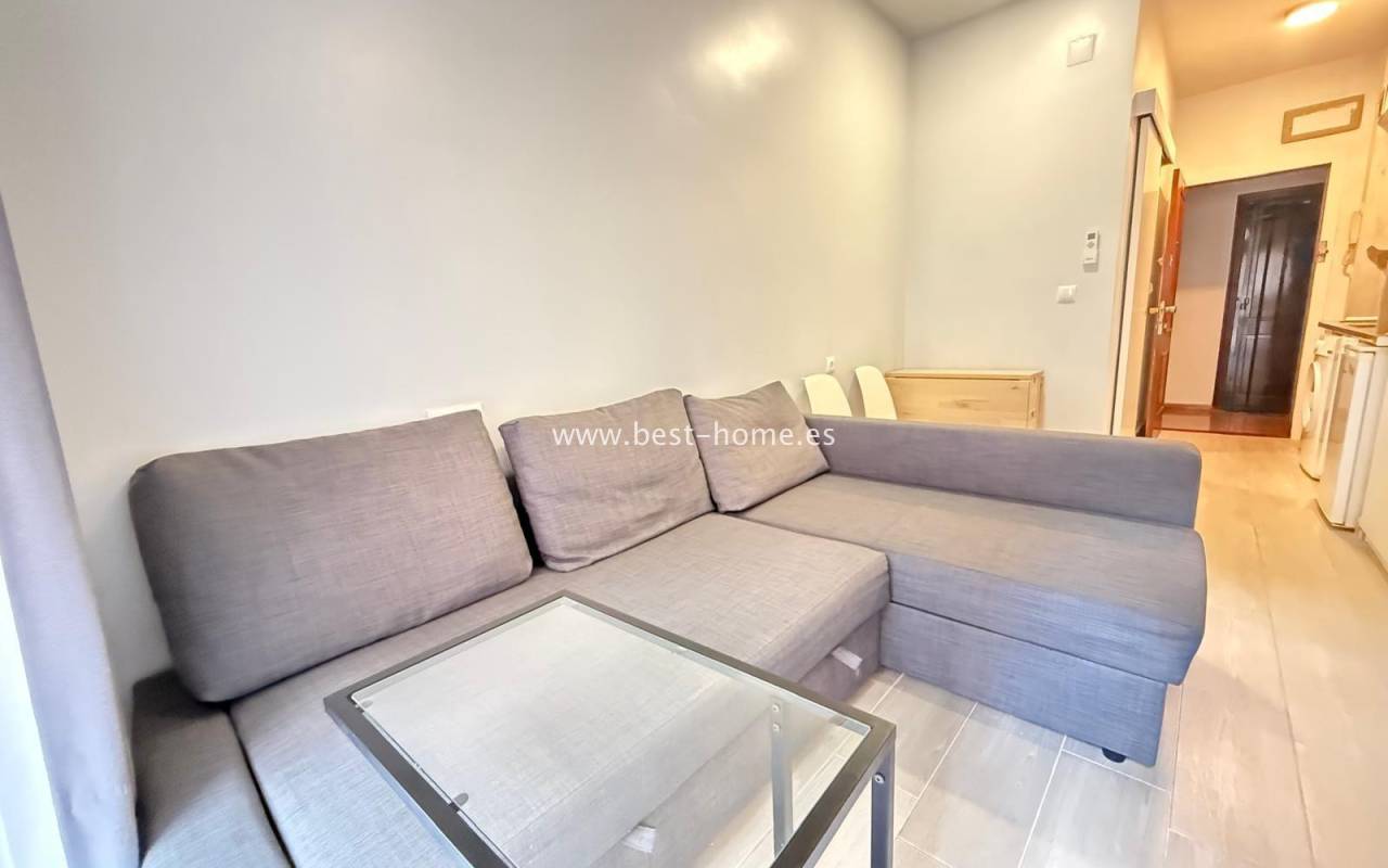 Studio blisko dwóch pięknych plaż w Torrevieja Playa Los Locos i Playa del Cura. Posiada salon z wyjściem na taras, oddzielną kuchnię wyposażona w sprzęt AGD, łazienkę. Idealne mieszkanie pod najem wakacyjny. W pobliżu znajdziemy dużą ilość knajp, restauracji, kawiarni i piękną promenadę ciągnacą się wzdłuż morza.