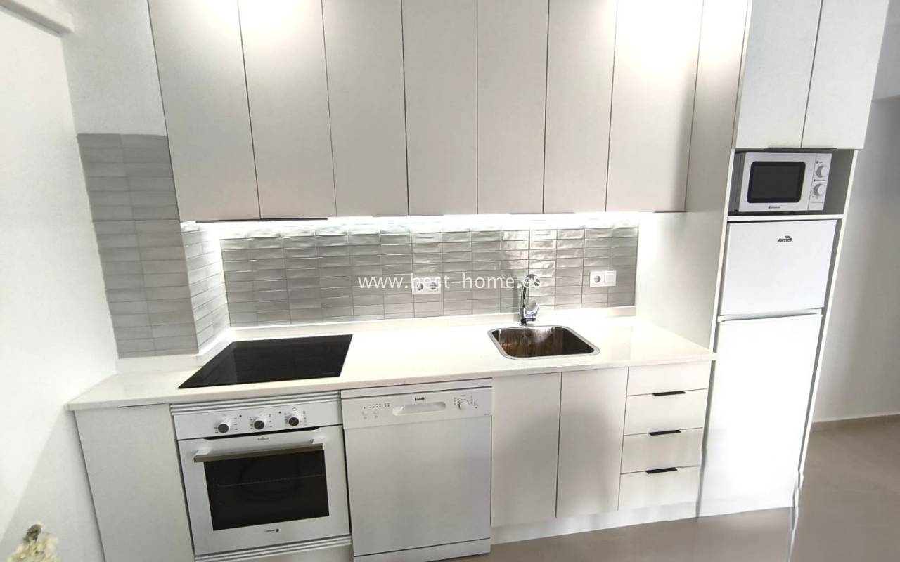 Apartament na 1 piętrze w zabudownie bungalowów, odnowiony z ogromnym zabudowanym tarasem. Posiada salon z wyjściem na zabudowany słoneczny taras z orientacją zachodnią, odnowioną kuchnię z nowoczesnym sprzętem AGD, dwuosobową sypialnię z dużą szafą i łazienkę. Mieszkanie jest umeblowane i wyposażone w klimatyzację. Apartament położony zaledwie 1 km od pięknej plaży Playa de Los Locos, znajduje się w spokojnej okolicy, co zapewnia atmosferę spokoju i relaksu. Jest również dogodnie położony w pobliżu wszystkich niezbędnych usług, co ułatwia codzienne życie.