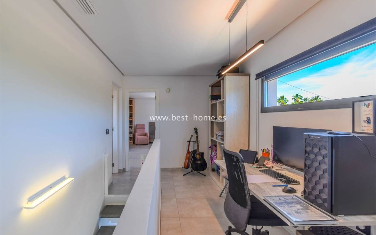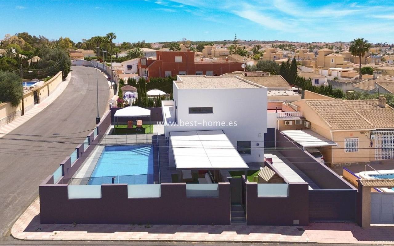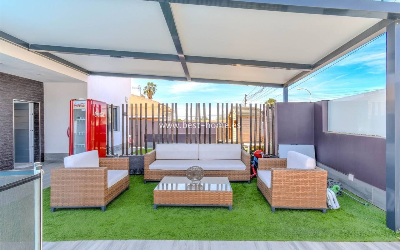 Przedstawiamy ten znakomity dom wolnostojący położony w spokojnej i bardzo cenionej dzielnicy La Siesta w Torrevieja. Nieruchomość wyróżnia się pełną prywatnością, nowoczesnym designem oraz doskonałym położeniem — idealna zarówno jako dom całoroczny, jak i miejsce na wymarzone wakacje nad morzem.