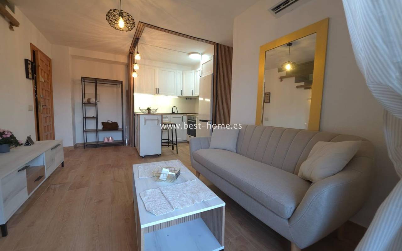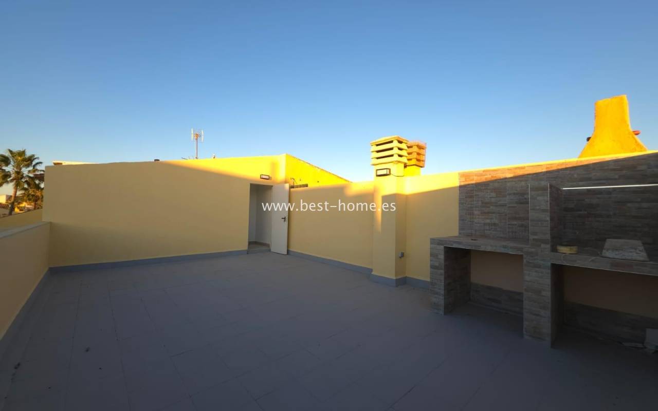 Penthouse, który zachwyca połączeniem komfortu, nowoczesnego stylu i śródziemnomorskiego klimatu. Zlokalizowany blisko morza e spokojnej dzielnicy Torrevieja La Veleta. Największym atutem tej wyjątkowej nieruchomości jest spektakularny taras typu solarium o powierzchni 48 m² – z eleganckim grillem, idealnym miejscem na poranne kawy, popołudniowy relaks czy wieczorne spotkania w gronie bliskich. To Twoja prywatna oaza pod hiszpańskim słońcem. Penthuuse posiada salon z owtartą kuchnia wyposażona w sprzęt AGD, 2 dwuosobowe sypilanie, łazienke i na samej górze taras/solarium. MIeszkanie jest umeblowane i wyposażone w klimatyzację. Zaledwie minuta spaceru dzieli Cię od urokliwej plaży Cala Ferry. To idealne miejsce zarówno do zamieszkania na stałe lub jako mieszkanie wakacyjne.
