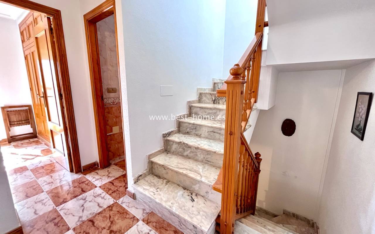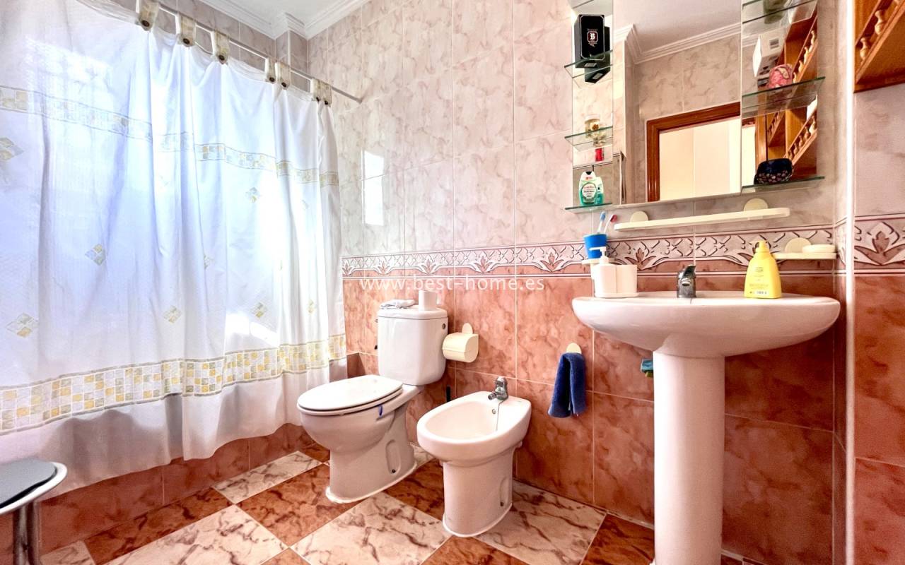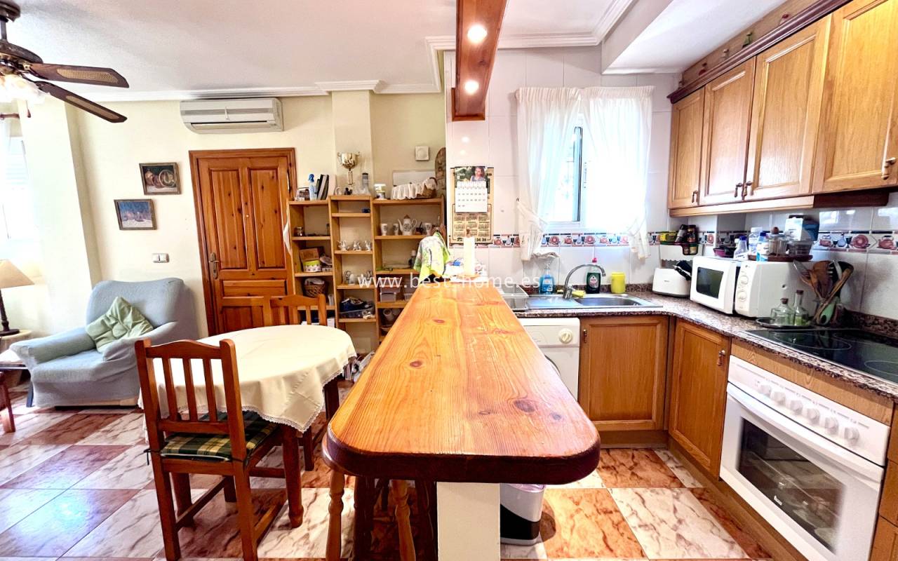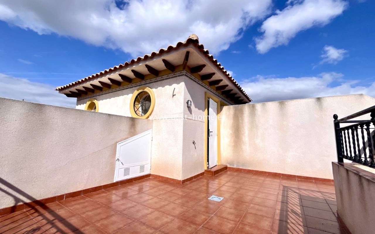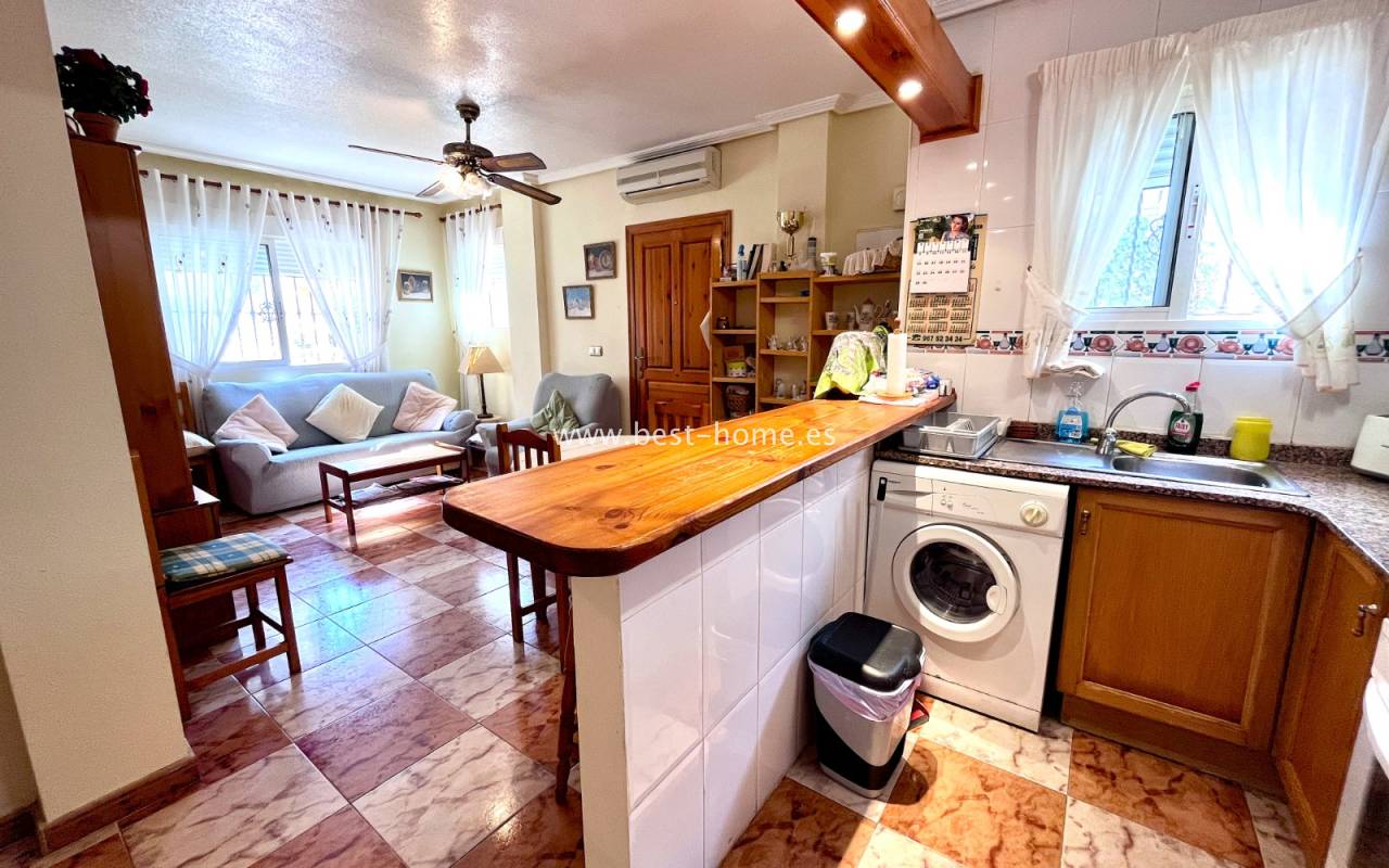 Dom położony jest w dobrej lokalizacji w dzielnicy La Zenia. Składa się z 3 sypialni, 2 łazienek, umeblowanej kuchni i salonu z jadalnią. Przed domem jest zadaszony taras i narożny ogródek z miejscem parkingowym. Do plaży 1,2 km. W cenie umeblowanie i sprzęt AGD.