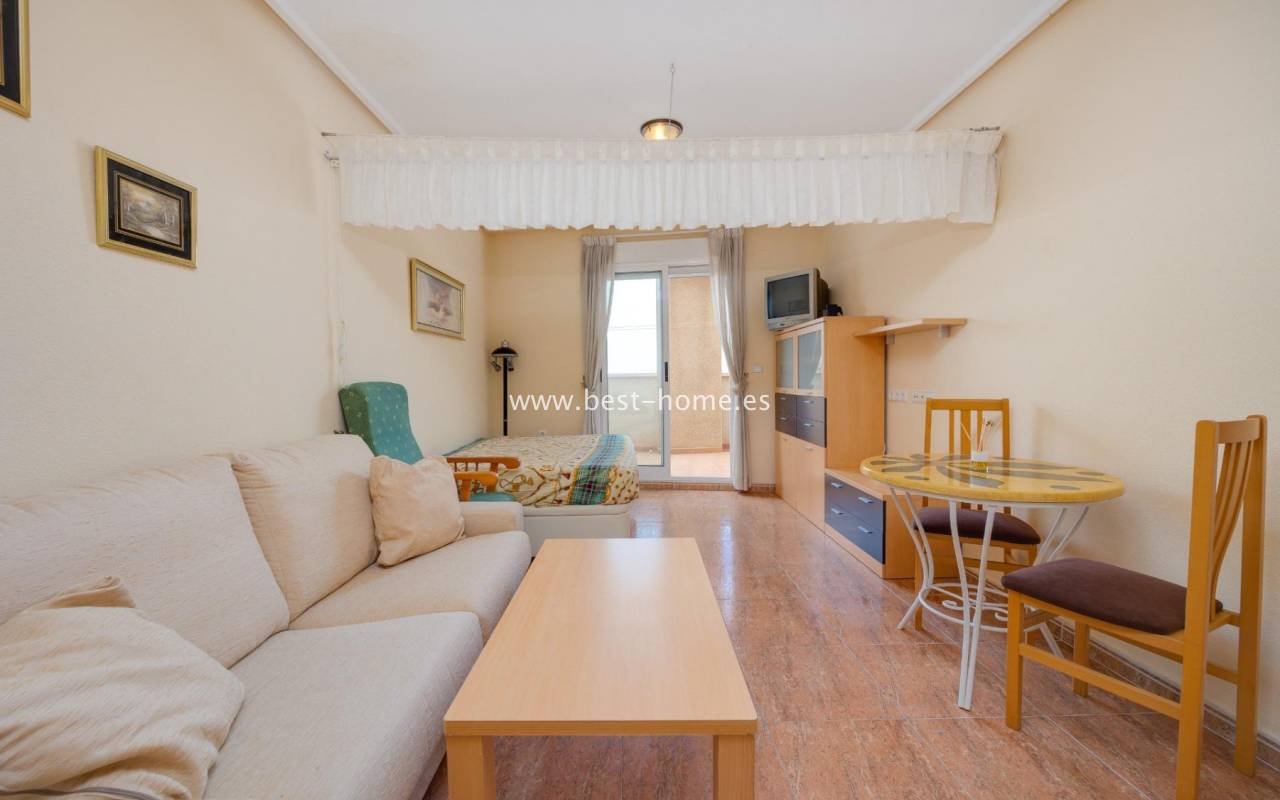 Studio na 5 piętrze z pięknym tarasem o powierzchni około 12 m², basenem osiedlowym na dachu budynku i miejscem parkingowym. Posiada przestronny salon z wyjściem na taras z orientacją zachodnią, kuchnię wyposażoną w sprzęt AGD, łazienkę. Mieszkanie jest umeblowane i wyposażone w klimatyzację. Dodatkowym atutem nieruchomości jest miejsce postojowe w garażu podziemnym. Na dachu budynku znajduje się basen przeznaczony dla mieszkańców. W pobliżu znajduje się mnóstwo udogodnień: barów, restauracji, kawiarni i sklepów.