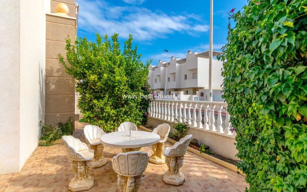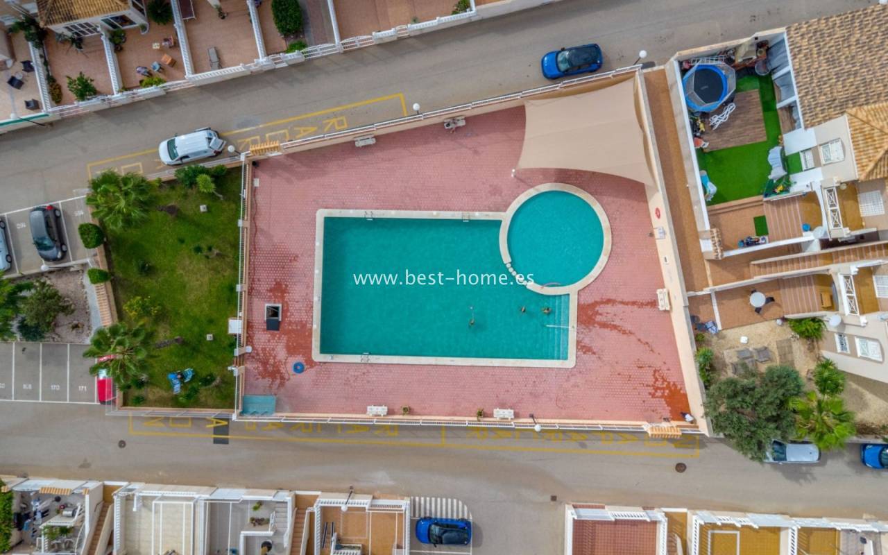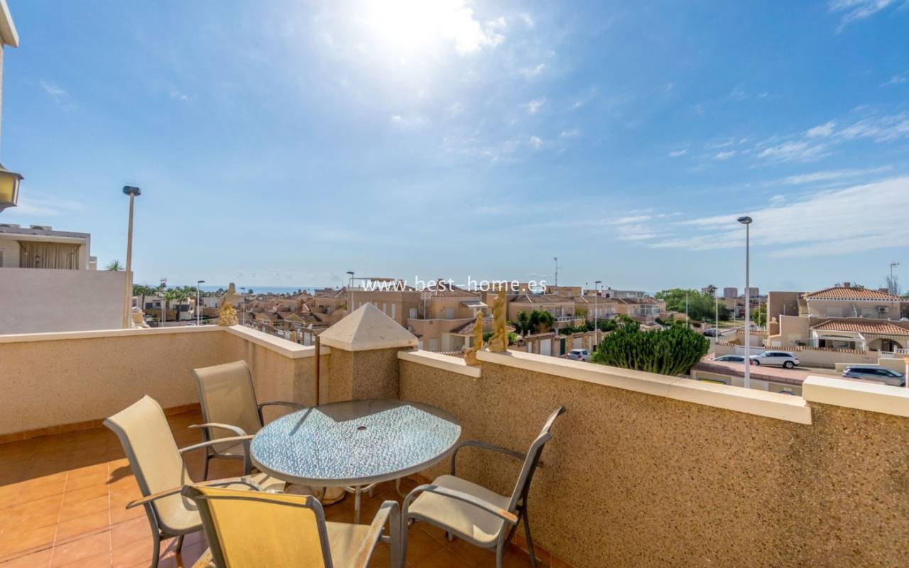 Dom (ćwiartka) znajduje się w bardzo spokojnej okolicy Aguas Nuevas. Nieruchomość składa się z 4 sypialni, 2 łazienek, umeblowanej kuchni i salonu z jadalnią. Dodatkowo jest narożny taras/ogród z miejscem parkingowym oraz solarium/taras na dachu, z którego rozciagają się widoki na morze i okolicę. W cenie umeblowanie, sprzęt AGD i klimatyzacja.