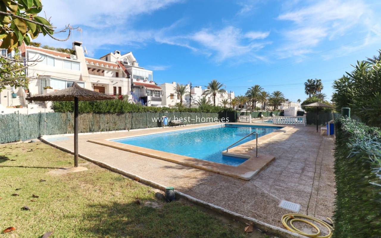 Apartament położony w urokliwej dzielnicy La Veleta w Torrevieja, zaledwie 100 metrów od morza, oferuje komfortowe i funkcjonalne wnętrza. Mieszkanie znajduje się na trzecim piętrze i składa się z dwóch sypialni oraz jednej łazienki. Do dyspozycji mieszkańców jest balkon o powierzchni 10 m² z otwartym widokiem, idealny do wypoczynku na świeżym powietrzu. Nieruchomość znajduje się na terenie osiedla z bazą wspólnotową, w okolicy dostępne są sklepy, apteka oraz stacja paliw. Centrum Torrevieja jest oddalone o około 5 minut jazdy samochodem, co zapewnia wygodny dostęp do pełnej infrastruktury miasta.