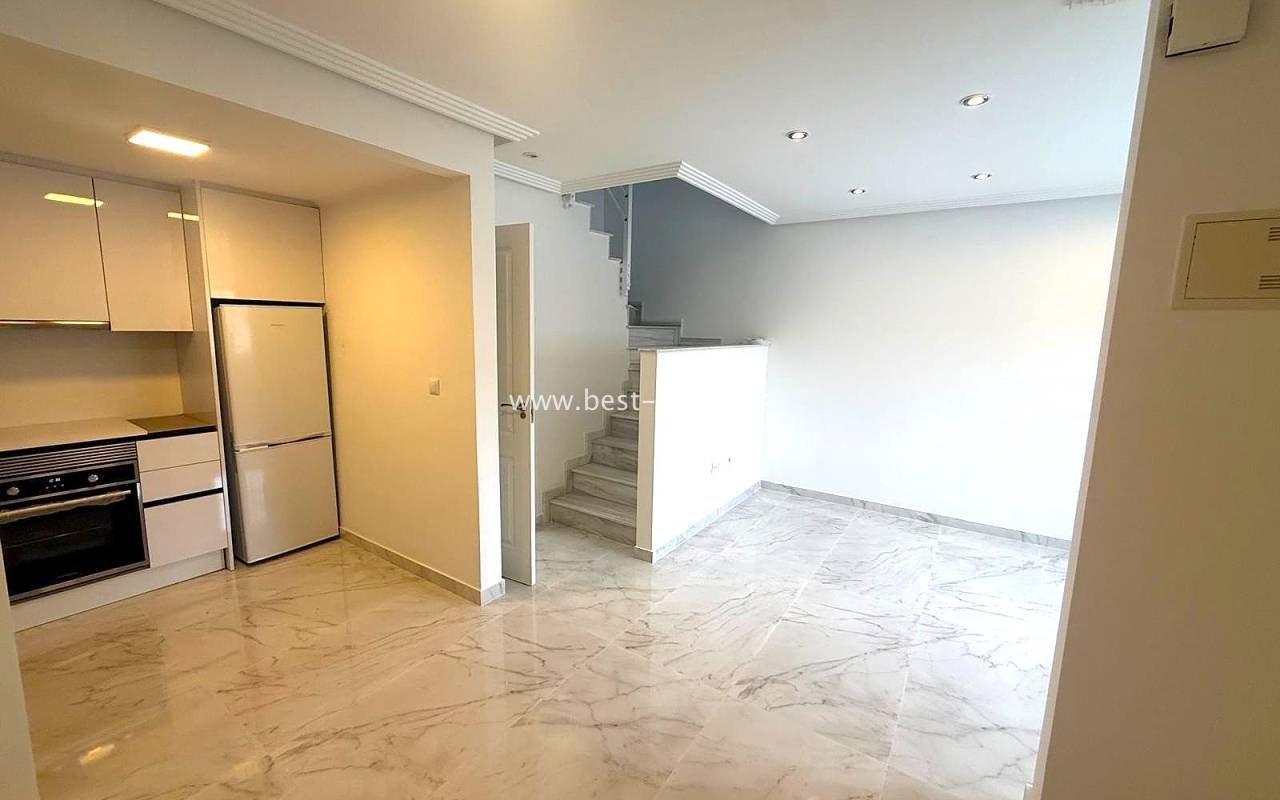 Wyremontowany szereg położony jest na zamkniętym osiedlu w spokojnej dzielnicy Aguas Nuevas. Nieruchomość na parterze posiada salon z jadalnią, kuchnię i toaletę. Na piętrze są dwie sypialnie i łazienka. Przed domem jest taras/ogórek z miejscem parkingowym. Ładny wspólny basen na osiedlu. Blisko do barów i restauracji.