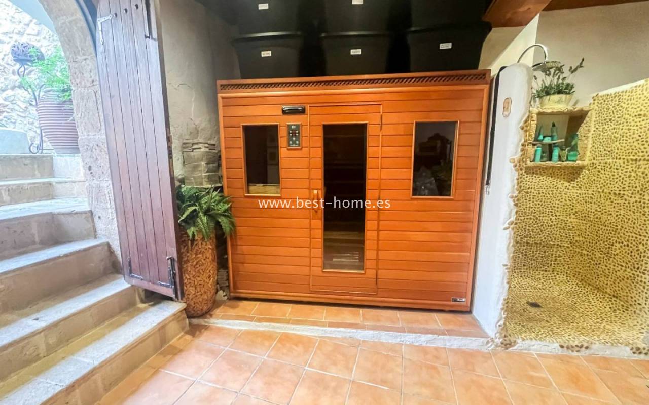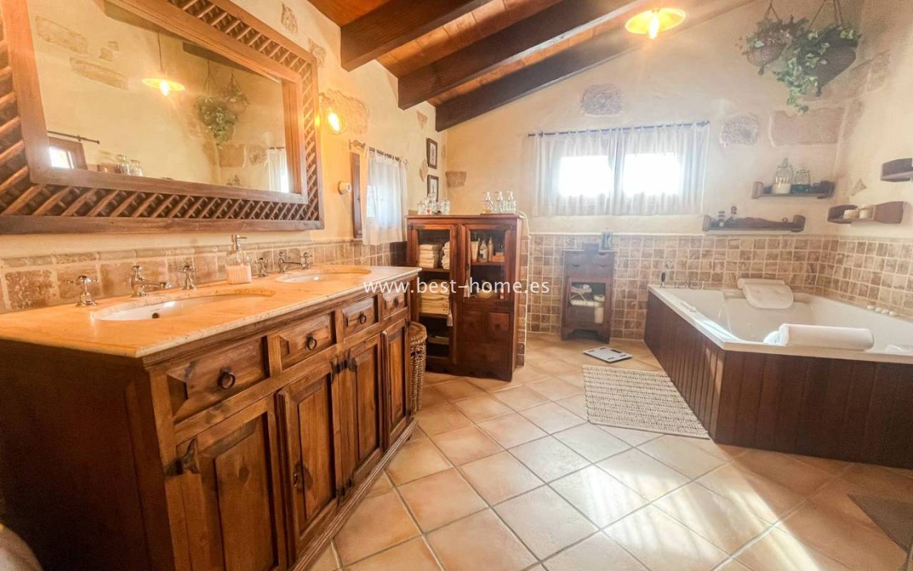 Główna rezydencja zachwyca autentycznym stylem śródziemnomorskim dzięki ścianom z kamienia tosca, sufitom z widocznymi drewnianymi belkami oraz ręcznie wyrabianym podłogom z terakoty. Każdy detal został starannie odrestaurowany, aby zachować historyczny charakter nieruchomości, jednocześnie zapewniając współczesne udogodnienia.