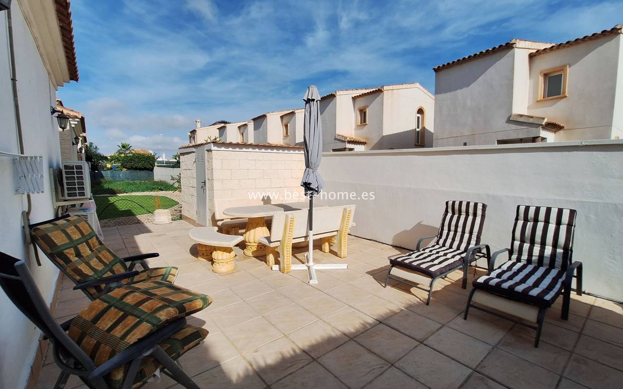 Wnętrze na parterze obejmuje jasny salon z kuchnią w układzie otwartym, sypialnię oraz łazienkę z prysznicem. Na piętrze znajdują się dwie kolejne sypialnie, łazienka rodzinna oraz słoneczny, prywatny taras.