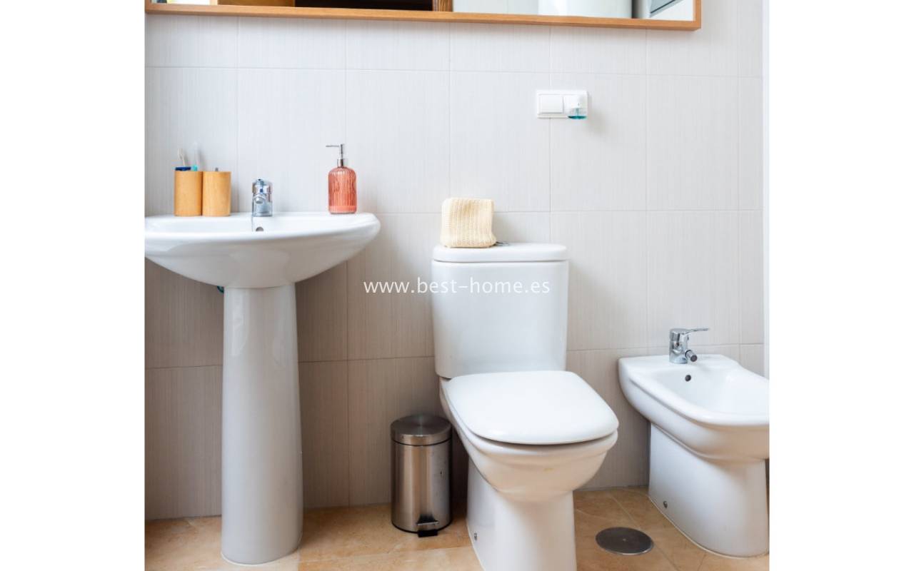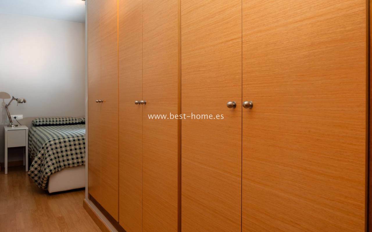 Znajduje się na pierwszym piętrze niewielkiego, spokojnego budynku z sześcioma sąsiadami. Wnętrze obejmuje przestronny salon z jadalnią, otwartą kuchnię, dwie sypialnie (jedna z łazienką en-suite) oraz dodatkową łazienkę. Mieszkanie jest w doskonałym stanie, z wysokiej jakości wykończeniem i centralną klimatyzacją.