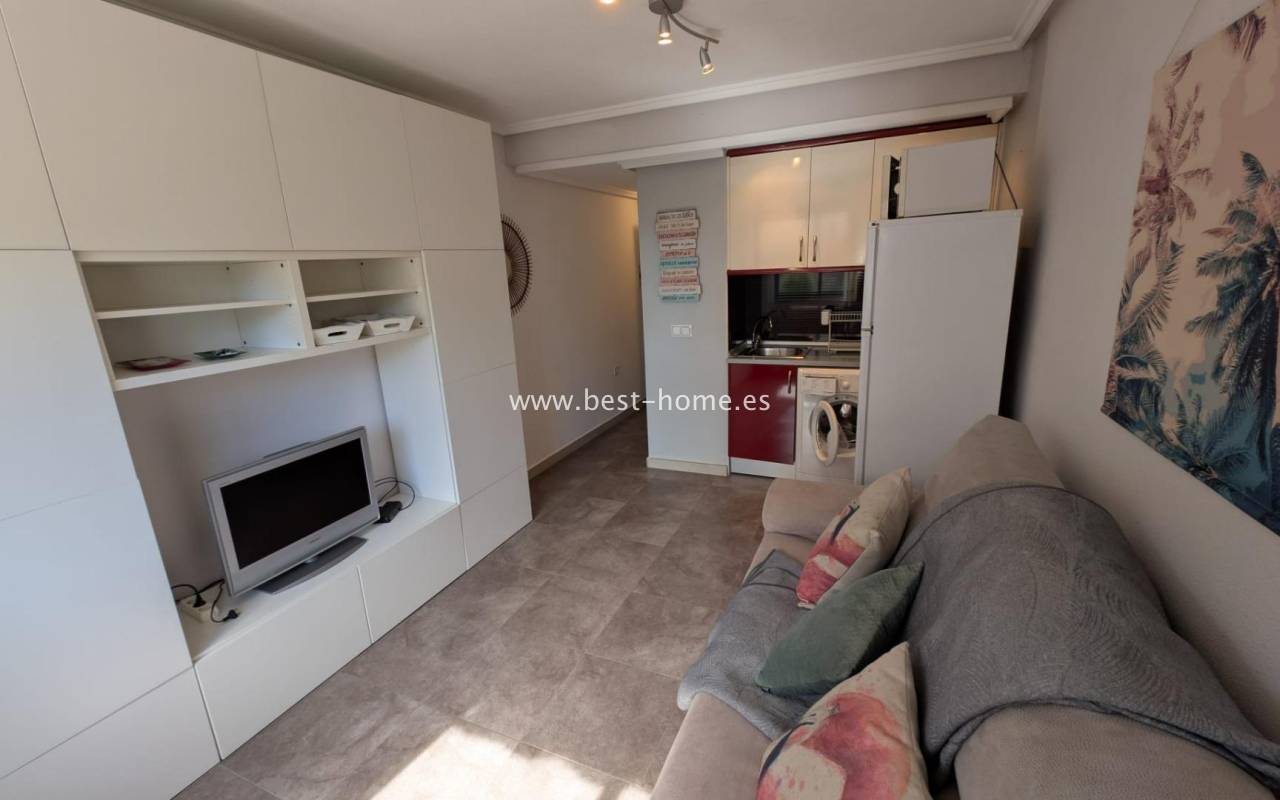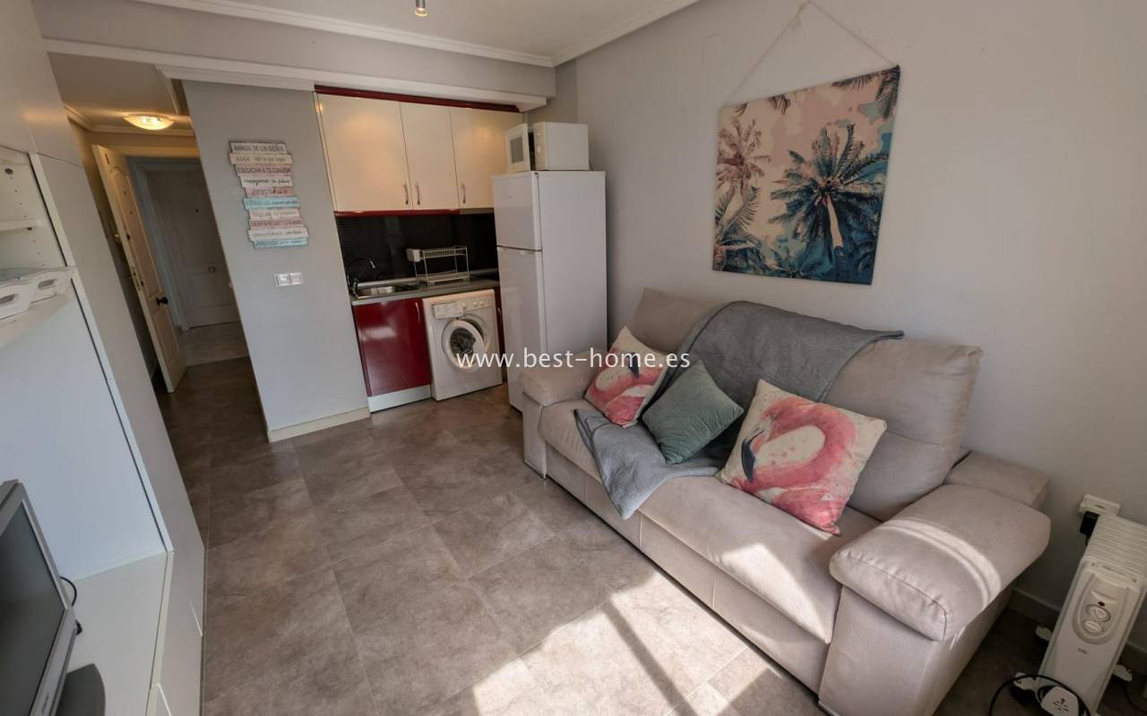 Studio na malowniczym osiedlu z basenem osiedlowym w Torrevieja. Posiada salon, małą kuchnię, korytarz i łazienkę z prysznicem. Mieszkanie jest dobrze utrzymane, umeblowane i zadbane. Na terenie osiedla znajduje się basen przeznaczony dla mieszkańców. Idealne mieszkanie pod najem wakacyjny. W pobliżu znajdziemy piękny park Aromatico, sklep spozywczy i dużą ilość restauracji.