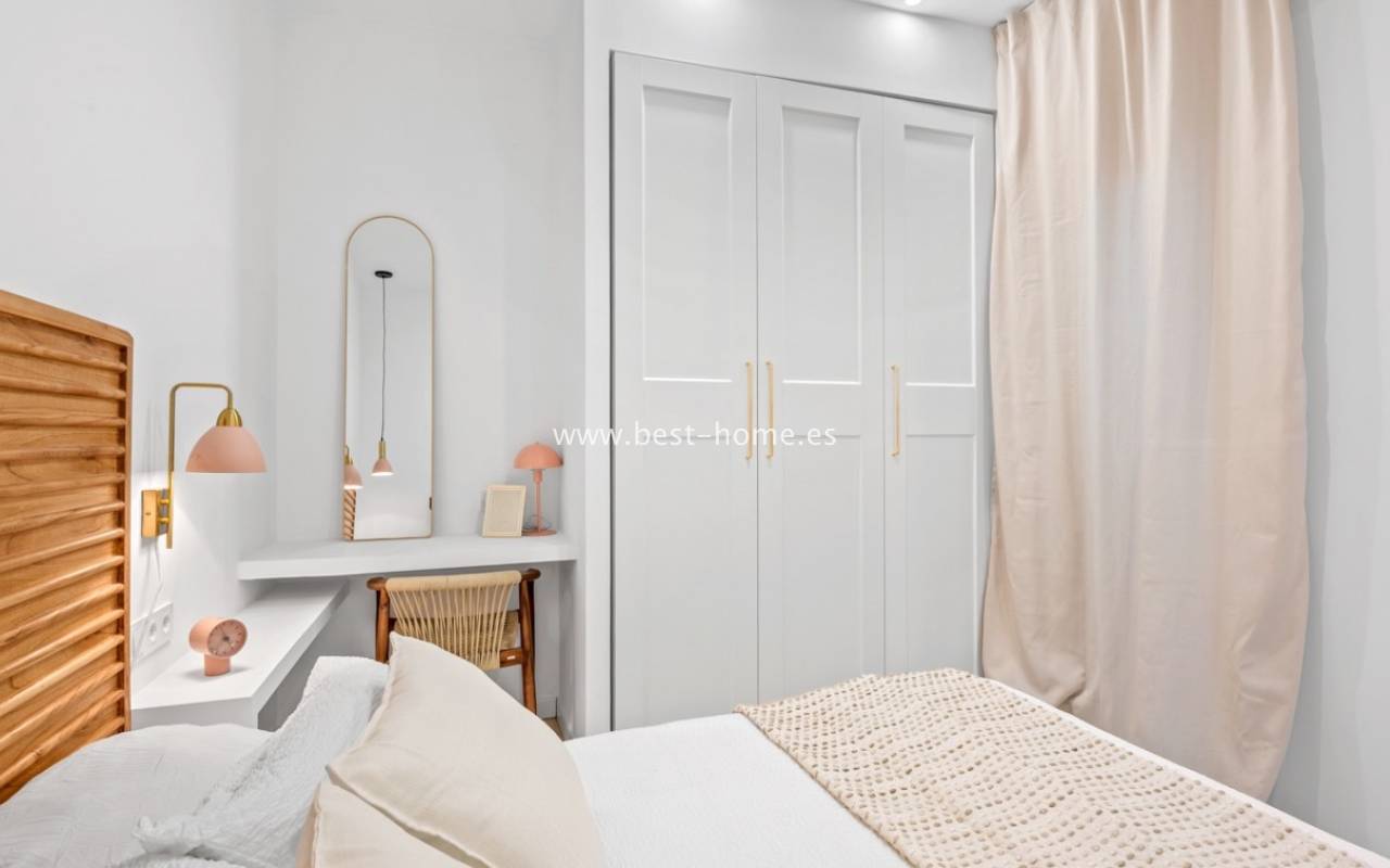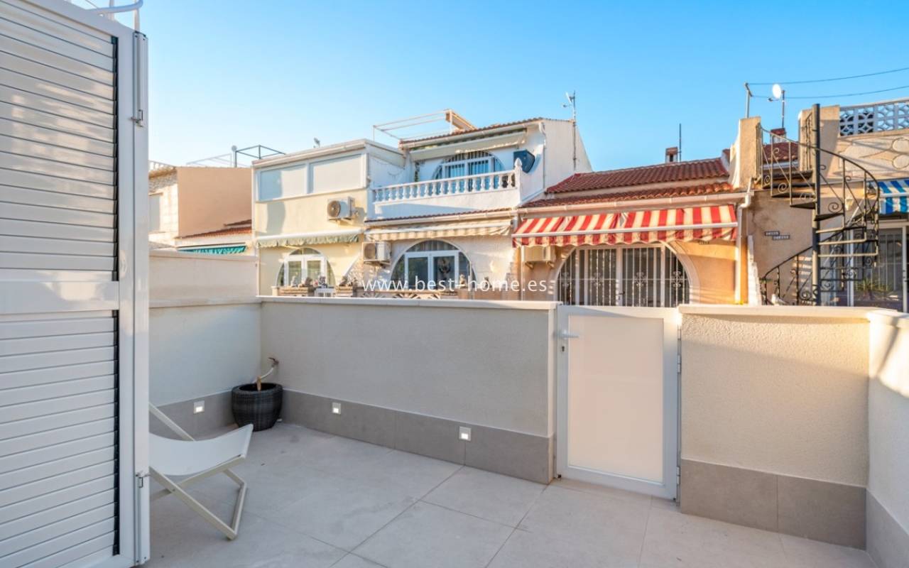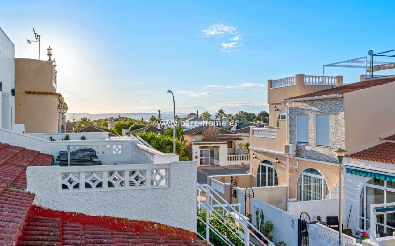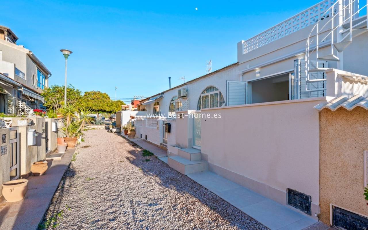 Bardzo nowocześnie urządzony parterowy bungalow z solarium w spokojnej cichej urbanizacji el Chaparral Posiada ogród/taras przez którego wchodzimy do jasnego, przestronnego salonu urzadzonego w stylu boho, następnie znajdziemy nowoczesną kuchnię wyposażoną w dobrej jakości sprzęt AGD, 2 sypialnie, w tym główna dwuosobowa z wbudowan szafa, odnowiona łazienke z prysznicem. Na górze nieruchomości znajdziemy taras/solarium z pięknym widokiem na zielony park, idealny do wypoczynku i spędzania czasu z rodziną. W poblizu jest park, duża ilośc barów, restauracji oraz urokliwe jęzioro przyrodnicze, idealne do spacerów i wycieczek rowerowych.