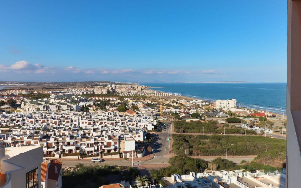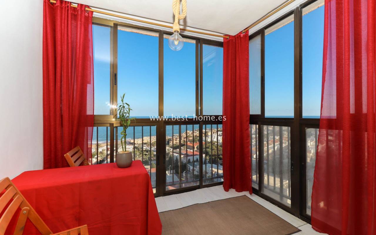 Apartament z fantastycznym widokiem na Morze Śródziemne, niedaleko piaszczystej plaży w urbanizacji Cabo Cervera. Posiada salon przestronny i jasny obszar, który stanowi prywatny punkt widokowy na morze. Dzięki przeszklonej zabudowie tarasu, widoki można podziwiać przez cały rok, tworząc ciepłą, relaksującą i pełną światła atmosferę, idealną na śniadania z widokiem na morze. Dodatkowo w nieruchomości znajdziemy 2 sypialnie, w tym główna dwuosobowa, kuchnię wyposażoną w sprzęt AGD, łazienkę. Idealne mieszkanie dla inwestorów, pod najem wakacyjny lub do zamieszkania na stałe. W pobliżu znajdziemy mnóstwo barów, restauracji, kawiarnii oraz piękną promenadę ciągnącą się wzdłuż morza.