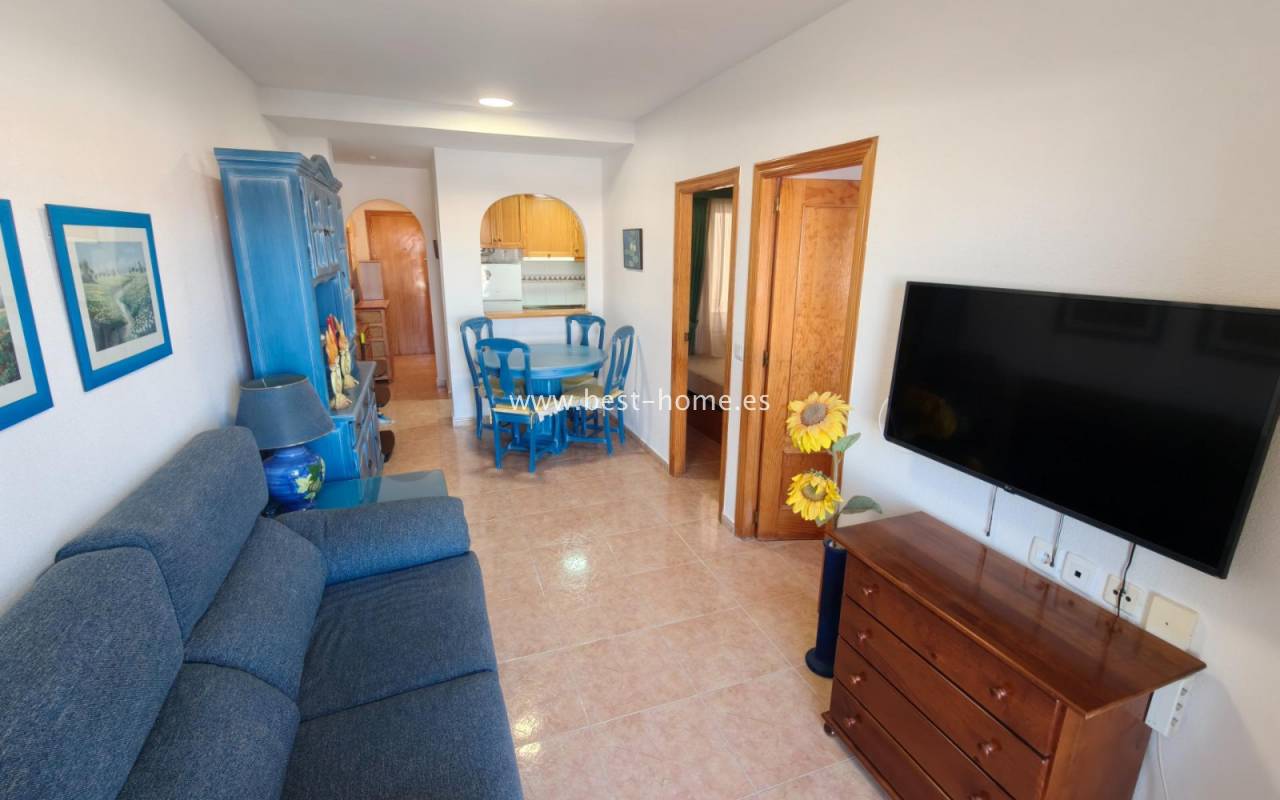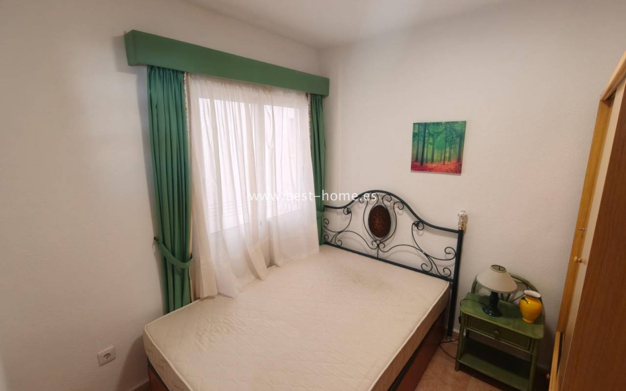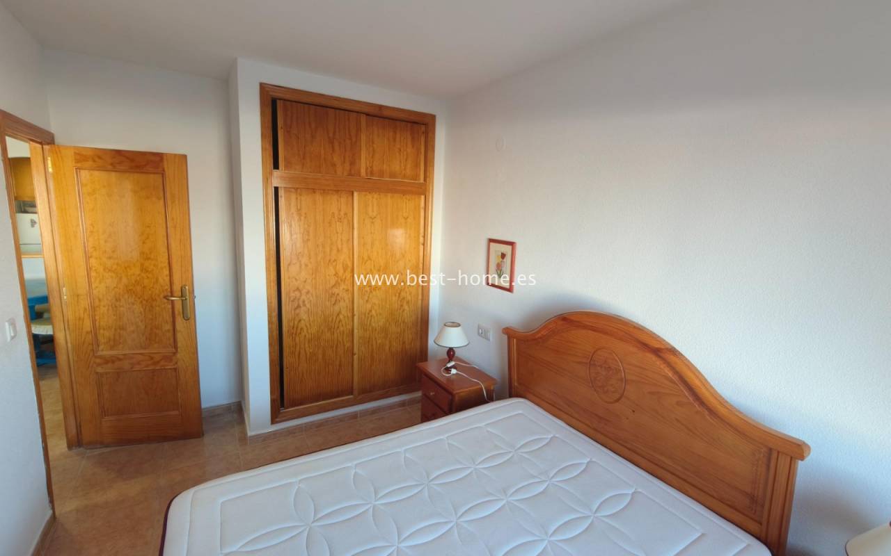Apartament w dobrej cenie z widokiem na morze i basenem osiedlowym. Posiada salon z wyjściem na taras, z którego rozciąga się widok na panoramę miasta i morze, 2 dwuosobowe sypialnie, w tym główna z wbudowaną szafą, kuchnię w stylu amerykańskim wyposażoną w sprzęt AGD, łazienkę. Mieszkanie jest umeblowane i wyposażone w klimatyzację. Na terenie osiedla znajduje sie basen przeznaczony dla mieszkańców. W pobliżu znajdziemy sklepy, bary, kawiarnie i restauracje.