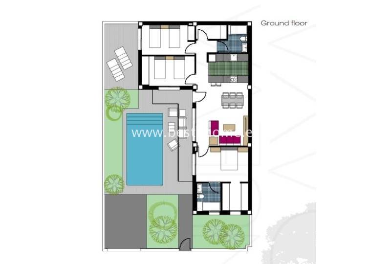 Nowe domy (ćwiartki) budowane są w spokojnym hiszpańskim miasteczku Daya Nueva. W pobliży odnajdziemy wiele barów serwujących tapas, kawiarnie i supermarkety. Parterowe domy składać się będą z 3 sypialni, 2 łazienek, umeblowanej kuchni i wysokiego salonu z jadalnią. Przed domem odnajdziemy prywatny i miejsce parkingowe. Działki od 231 m2 do 297 m2.