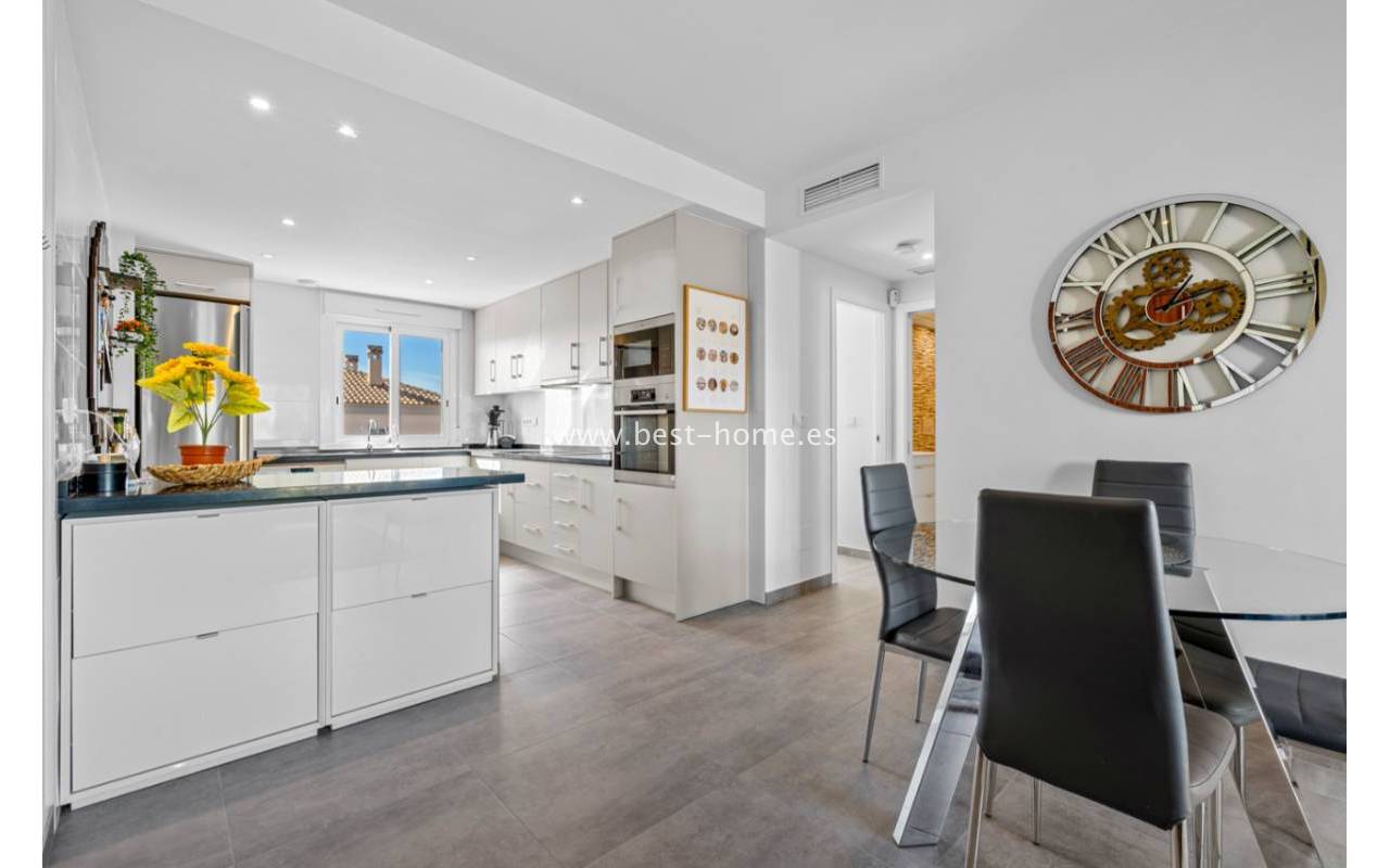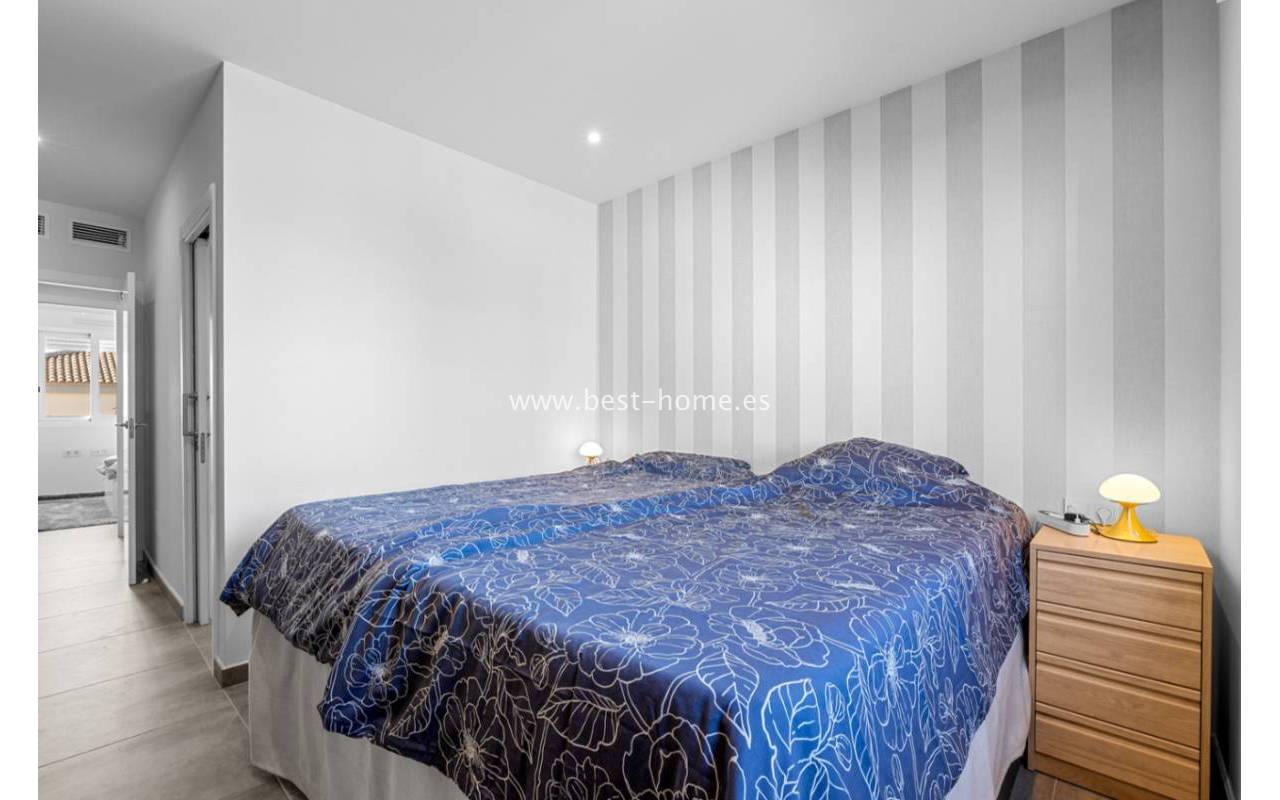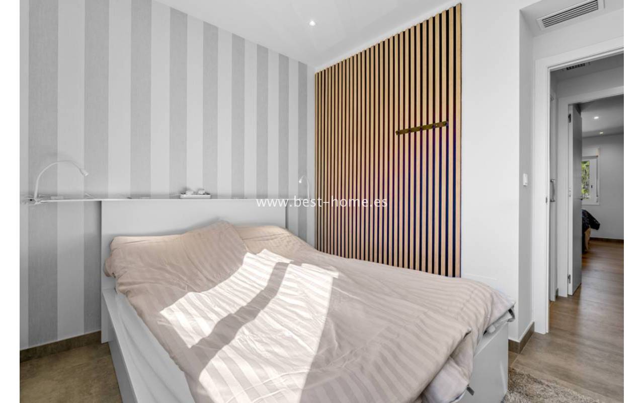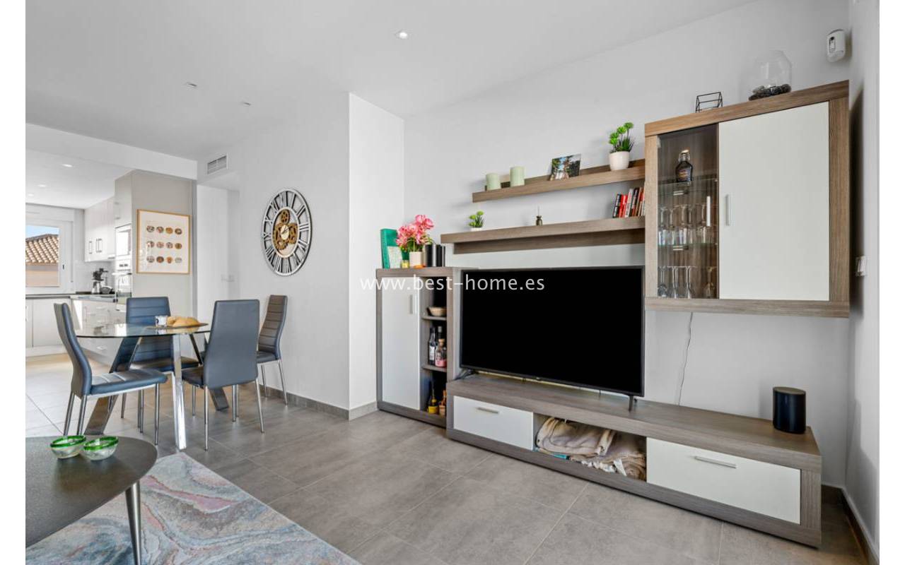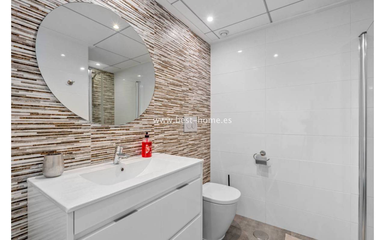 Nieruchomość znajduje się w Aguas Nuevas w Torrevieja na wybrzeżu Costa Blanca. To nowoczesny bungalow na piętrze z 2019 roku o powierzchni 78 m². Ma 2 sypialnie z wbudowanymi szafami i 2 łazienki, w tym jedną en suite. Salon z otwartą kuchnią jest jasny i ma wyjście na duży taras z widokiem na część wspólną i basen. Na dachu znajduje się duży prywatny taras słoneczny. Mieszkanie sprzedawane jest z umeblowaniem, posiada centralną klimatyzację oraz ogrzewanie podłogowe w łazienkach. W cenie jest prywatne miejsce parkingowe w garażu podziemnym. Osiedle jest ogrodzone i oferuje dwa baseny oraz jacuzzi, tereny zielone i plac zabaw. Blisko są sklepy, restauracje oraz plaża La Mata