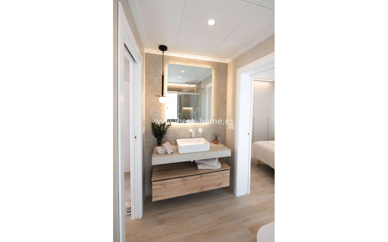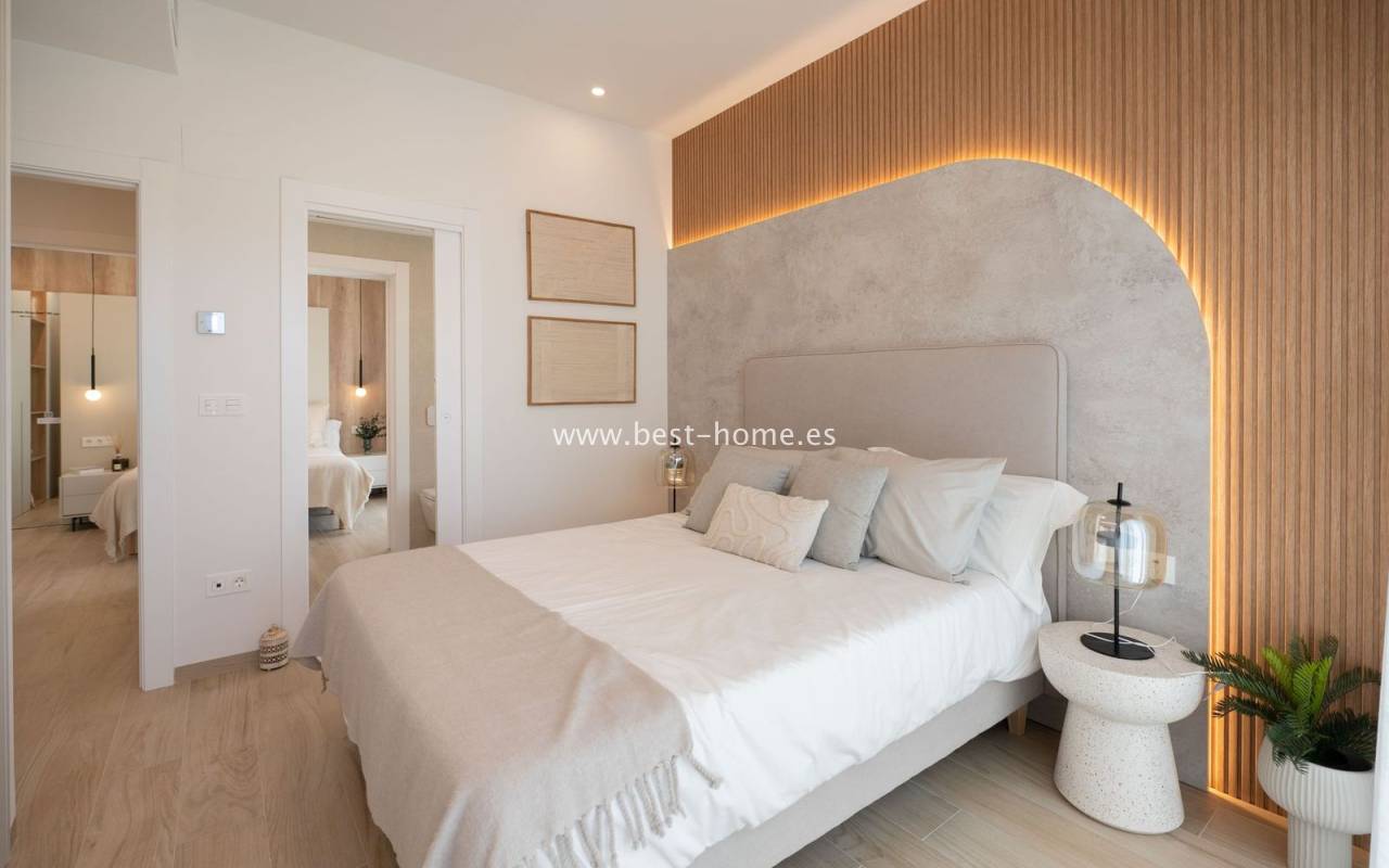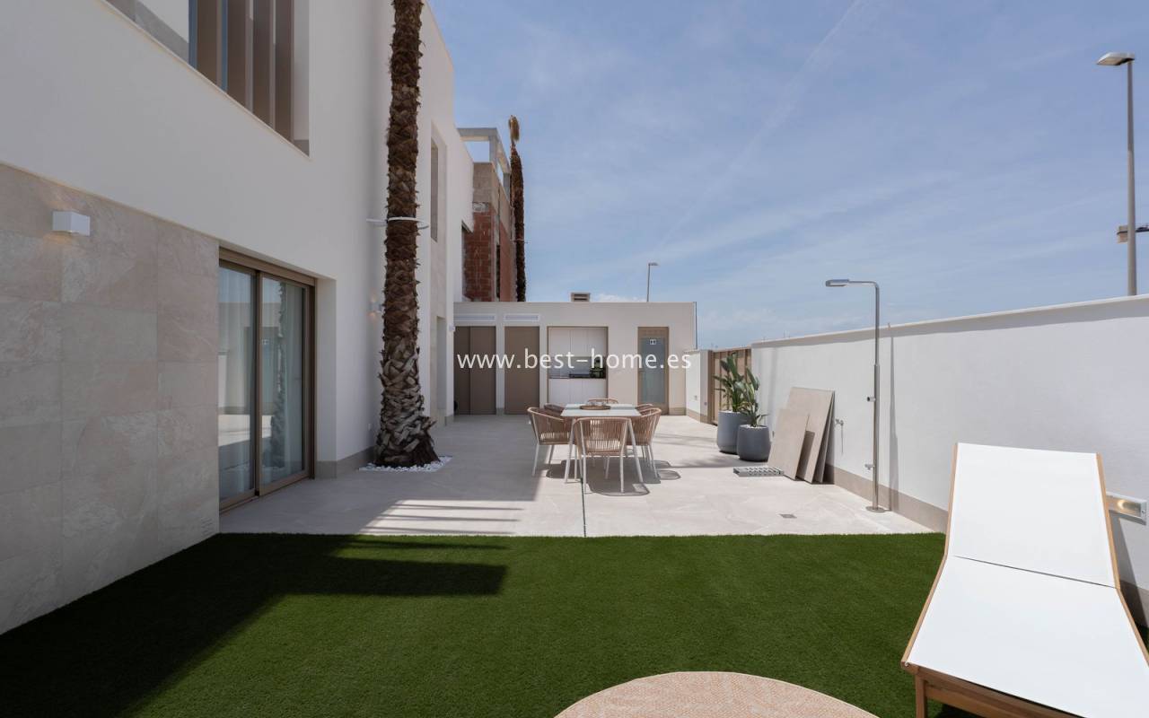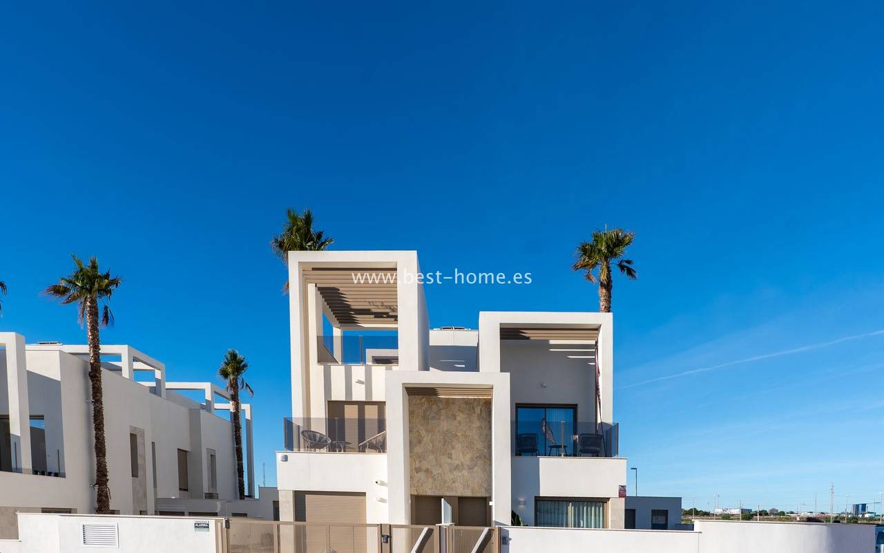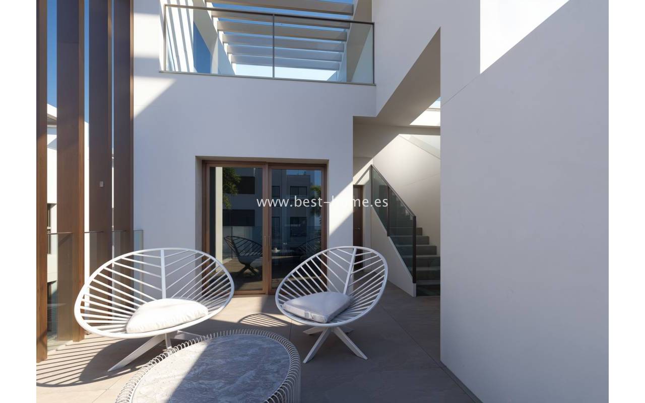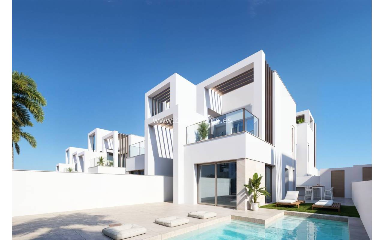 Nowe osiedle składające się z 37 willi (ćwiartki) budowane są przy polu golfowym w Los Alcazares. Domy na parterze składać się będą z przestronnego salonu z jadalnią i kuchnią, jednej sypialni z łazienką en-suit i toalety. Na piętrze odnajdziemy dwie sypialnie z budowanymi szafami, drugą łazienkę i taras. Z tarasu schodami dostaniemy się na solarium/taras na dachu (29 m2), gdzie można zrobić letnią kuchnię i jacuzzi. Przed domem będzie prywatny basen oraz taras z miejscem do grillowana i toaletą. Bardzo wysoka jakość wykończenia w cenie zabudowa kuchenna wraz ze sprzętem AGD, centralna klimatyzacja ciepło/zimno, wykończone łazienki, oświetlenie Led, prywatny basen, grill. Mieszkańcy będą mieli dostęp do sauny, siłowni, spa i terenów zielonych.