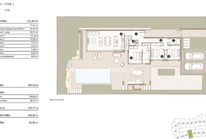 Nowe wille parterowe budowane są w topowej lokalizacji na polu golfowym w Las Colinas. Domy składać się będą z przestronnego i jasnego salonu połączonego z jadalnią i umeblowaną kuchnią z wyspą, głównej sypialni z garderoba i łazienka en suit, dwóch kolejnych sypialni, łazienki i toalety. Z salonu przez duże przesuwne drzwi będzie wyjście na taras i do prywatnego basenu (ok. 30 m2). Schodami dostaniemy się do podpiwniczenia, gdzie odnajdziemy pralnię i pomieszczenie gospodarcze. Luksusowe wykończenie w cenie, zabudowa kuchenna wraz ze sprzętem AGD, centralna klimatyzacja, kompletne łazienki z ogrzewaniem podłogowym, elektryczne rolety. Działki od 653 m2.