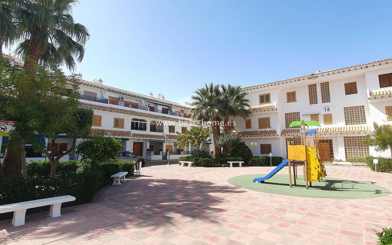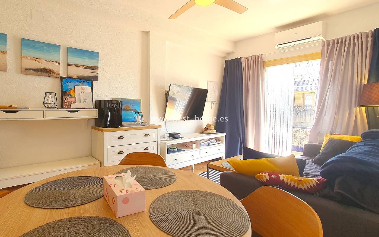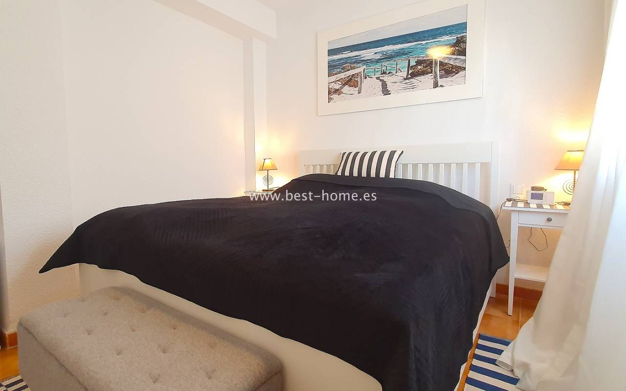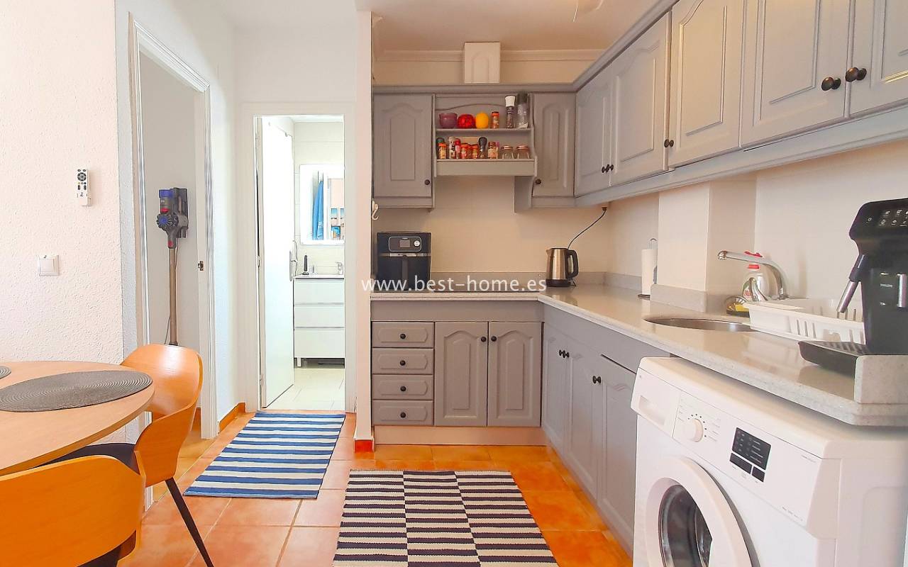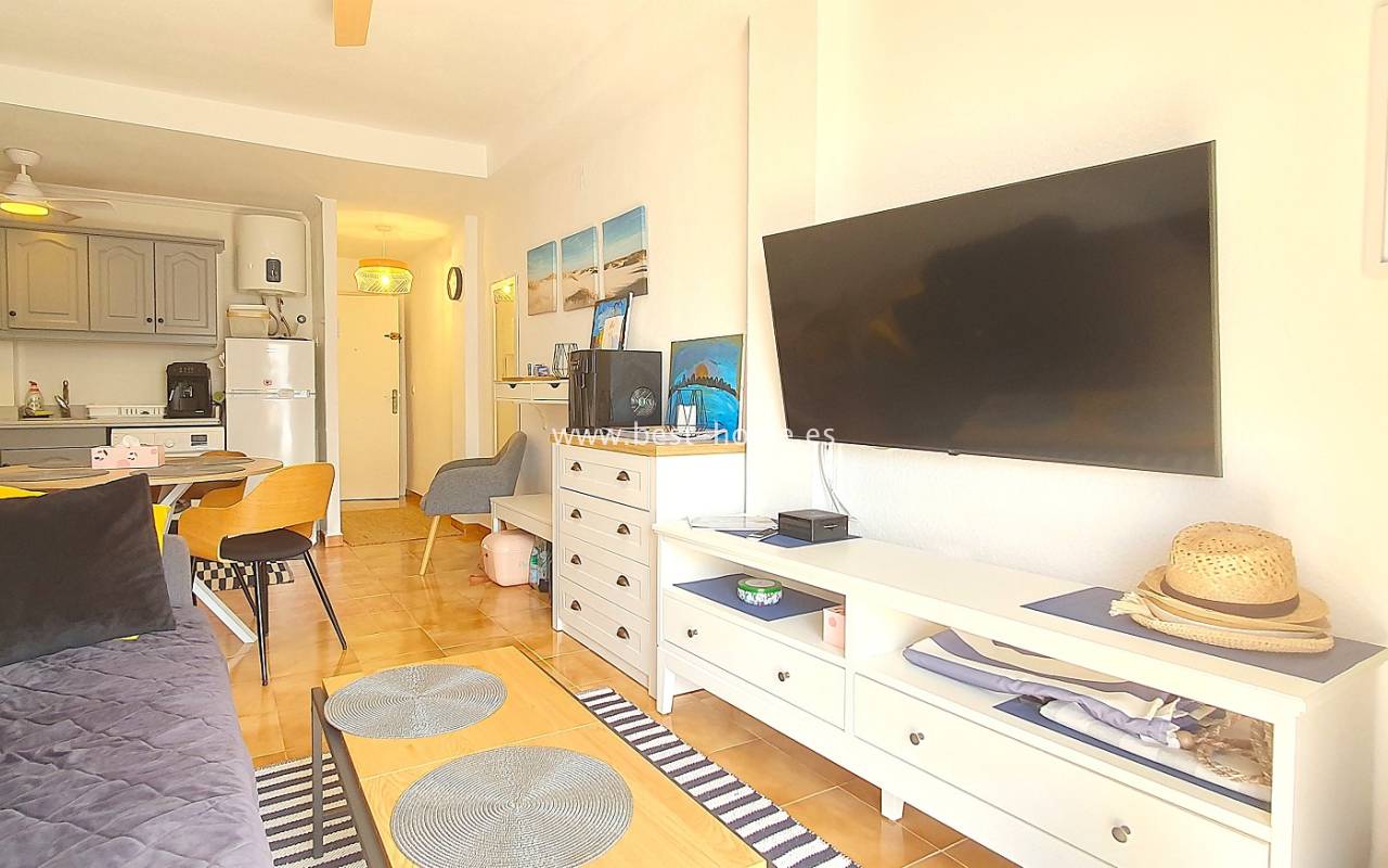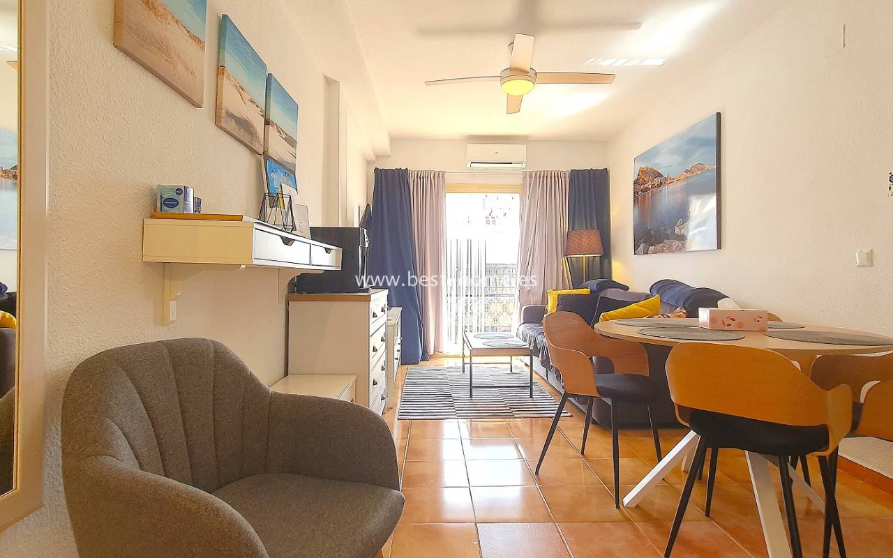 Ten atrakcyjny apartament położony jest na ładnym, hiszpańskim osiedlu w Santa Pola. Nieruchomość jest na 2 piętrze, składa się z umeblowanej kuchni, jednej sypialni z wbudowaną szafą, wyremontowanej łazienki i przestronnego salonu z jadalnią. Z salonu jest wyjście na słoneczny taras. Apartament zadbany, umeblowany, wyposażony z wentylatory sufitowe i klimatyzację. Nowa instalacja elektryczna. Na terenie osiedla jest wspólny basen i kort tenisowy.