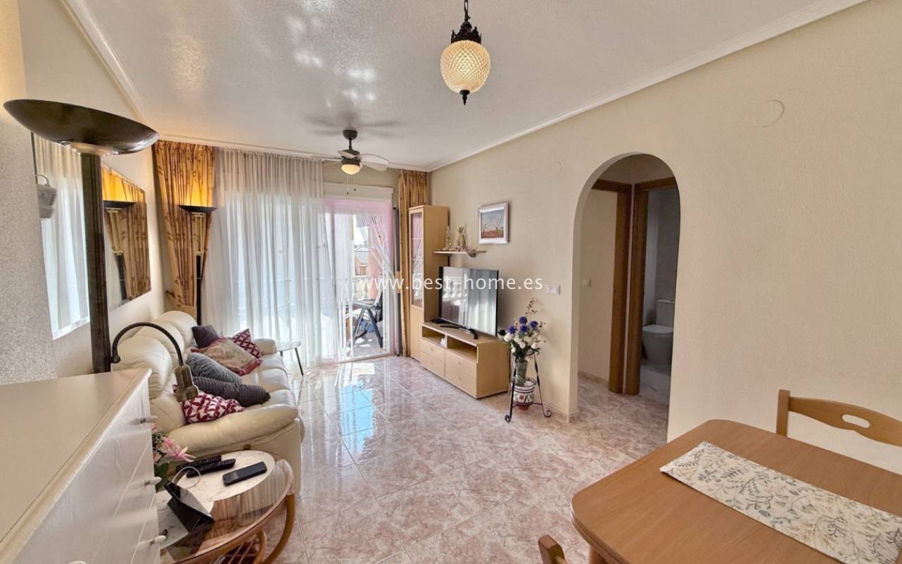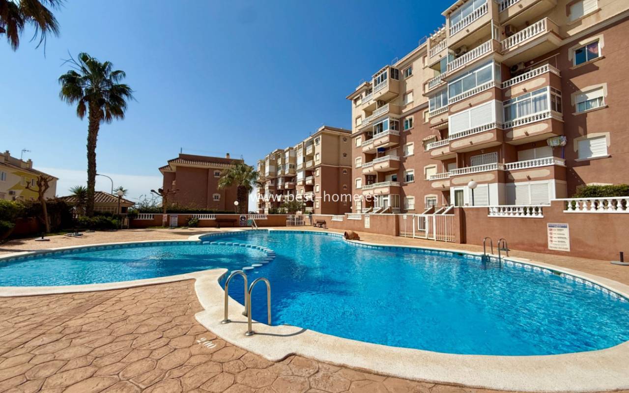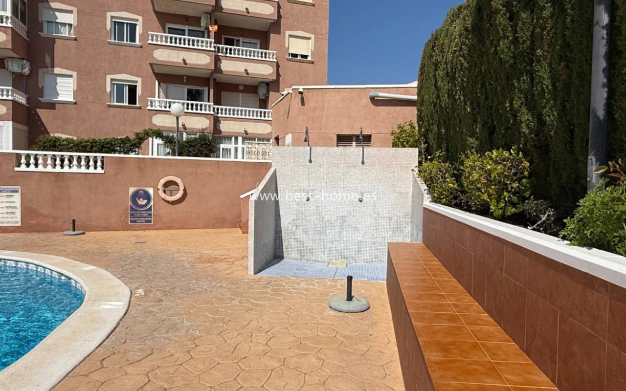 Zadbany apartament znajduje się na zamkniętym osiedlu w Torre La Mata. Nieruchomośc jest na 1 piętrze, składa się z dwóch sypialni, łazienki, umeblowanej kuchni i jasnego salonu z wyjściem na taras. W cenie umeblowanie, klimatyzacja w sypialni i sprzęt AGD. Na terenie ładengo osiedla jest wpólny basen. BArdzo dobra lokalizacja w pobliży nowe centrum handlowe, dużo supermarketów i barów. Bark windy w budynku.