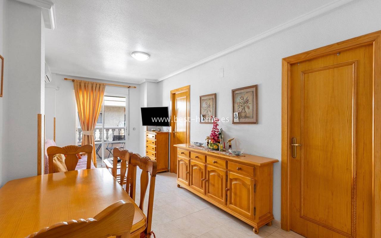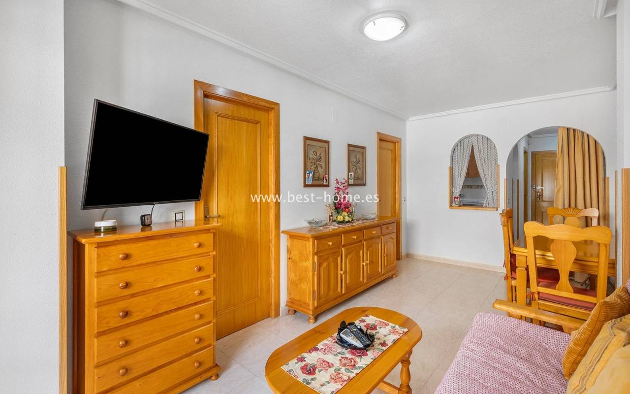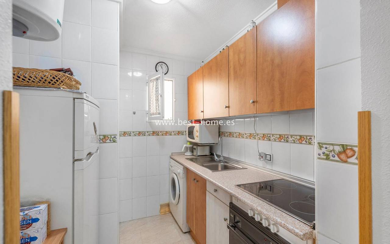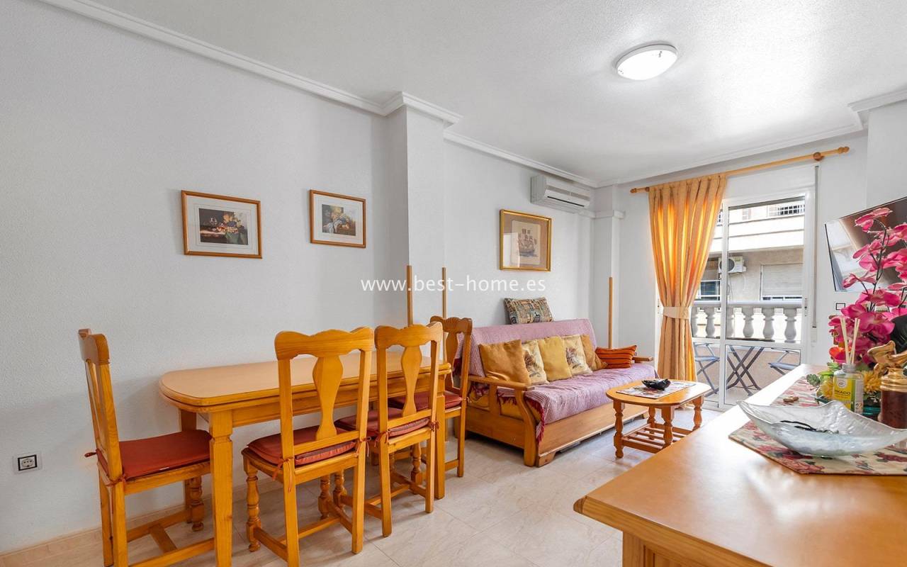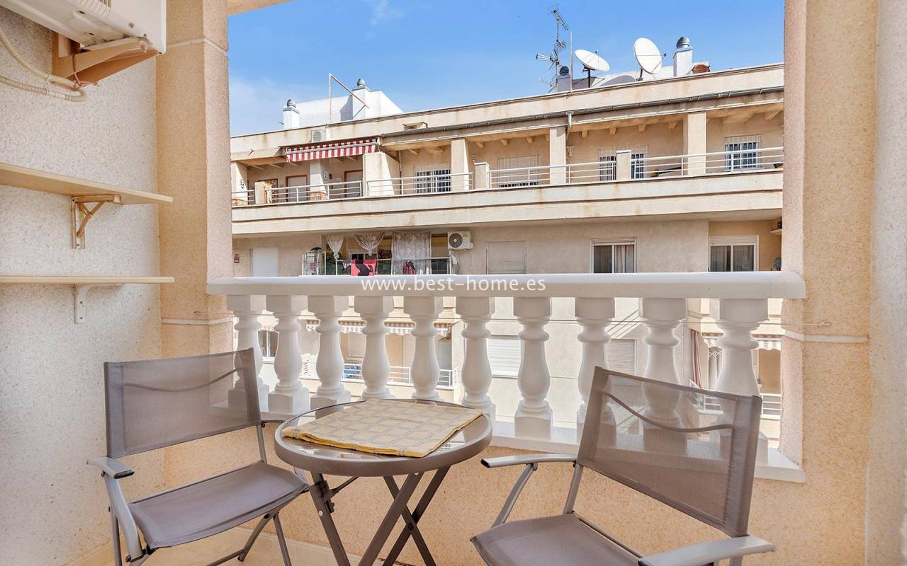 Nieruchomość jest na 4 piętrze, składa się z 2 sypialni, łazienki, umeblowanej kuchni i przestronnego salonu z jadalnią. Mieszkanie umeblowane i wyposażone w sprzęt AGD. Basen dla mieszkańców. Blisko jest supermarket Mercadona oraz stacja autobusowa. Do plaży i nadmorskiej promenady jest 700 m.