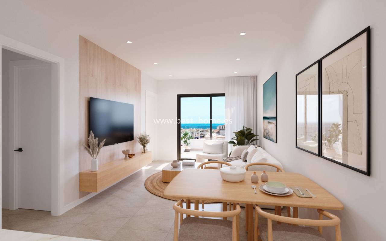 Nowoczesne apartamenty w Torrevieja, nowe, dostępne na piętrach od 1 do 4, po dwa mieszkania na każdym piętrze, a na najwyższej kondygnacji znajduje się ekskluzywny penthouse. Każdy apartament posiada 2 sypialnie oraz 2 łazienki. W cenie zawarte są elektryczne rolety, pompa ciepła oraz w pełni wykończone łazienki z ogrzewaniem podłogowym. Nieruchomości znajdują się w odległości około 1 km od piaszczystych plaż Torrevieja, a w najbliższej okolicy dostępne są bary, restauracje oraz supermarkety. Ceny apartamentów zaczynają się od 269 000 € i sięgają 299 000 €.