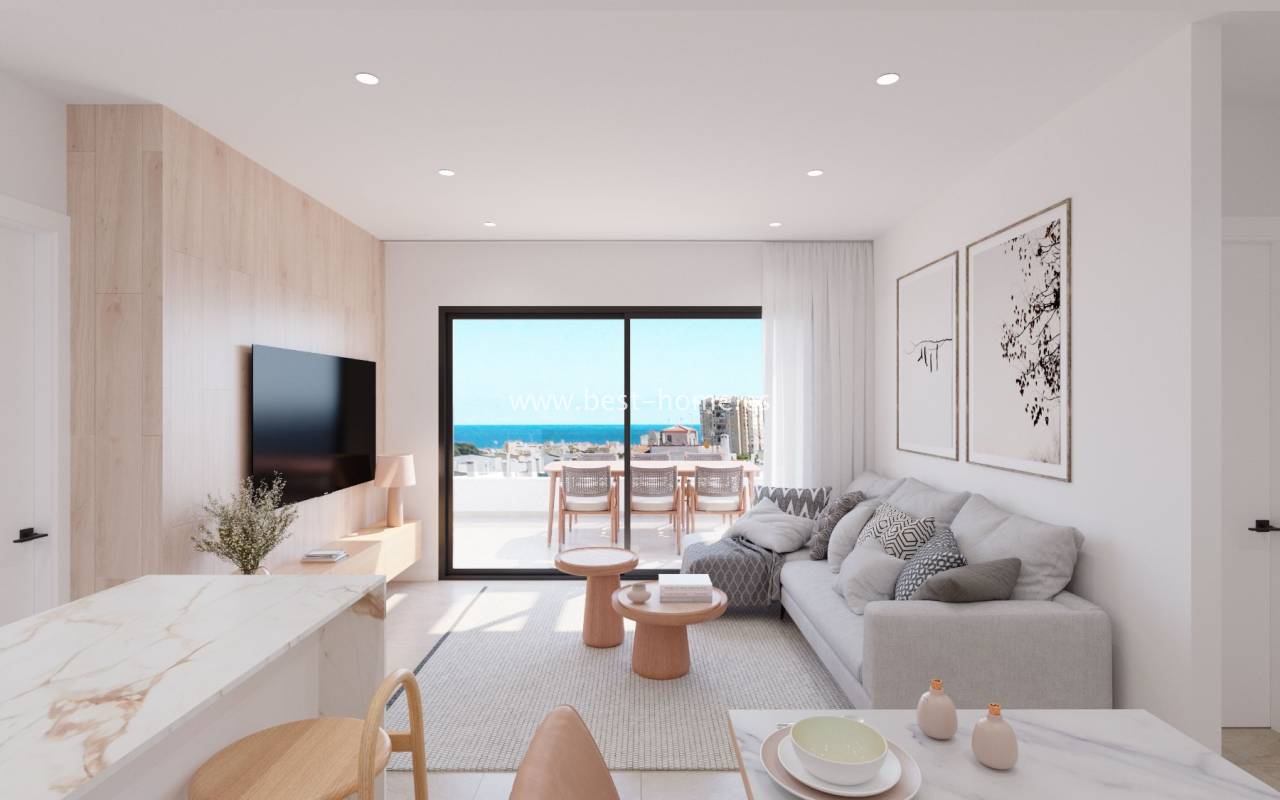 Ekskluzywny apartament typu penthouse, jedyny w całym budynku, w cenie 349 000 €, oferujący zachwycające panoramiczne widoki na miasto oraz morze. Nieruchomość posiada 2 sypialnie oraz 2 łazienki, a także przestronny salon z otwartą kuchnią. Apartament wyposażony jest w elektryczne rolety, pompę ciepła oraz w pełni wykończone łazienki z ogrzewaniem podłogowym. Dodatkowo w cenie znajduje się miejsce parkingowe oraz dostęp do wspólnotowego basenu.