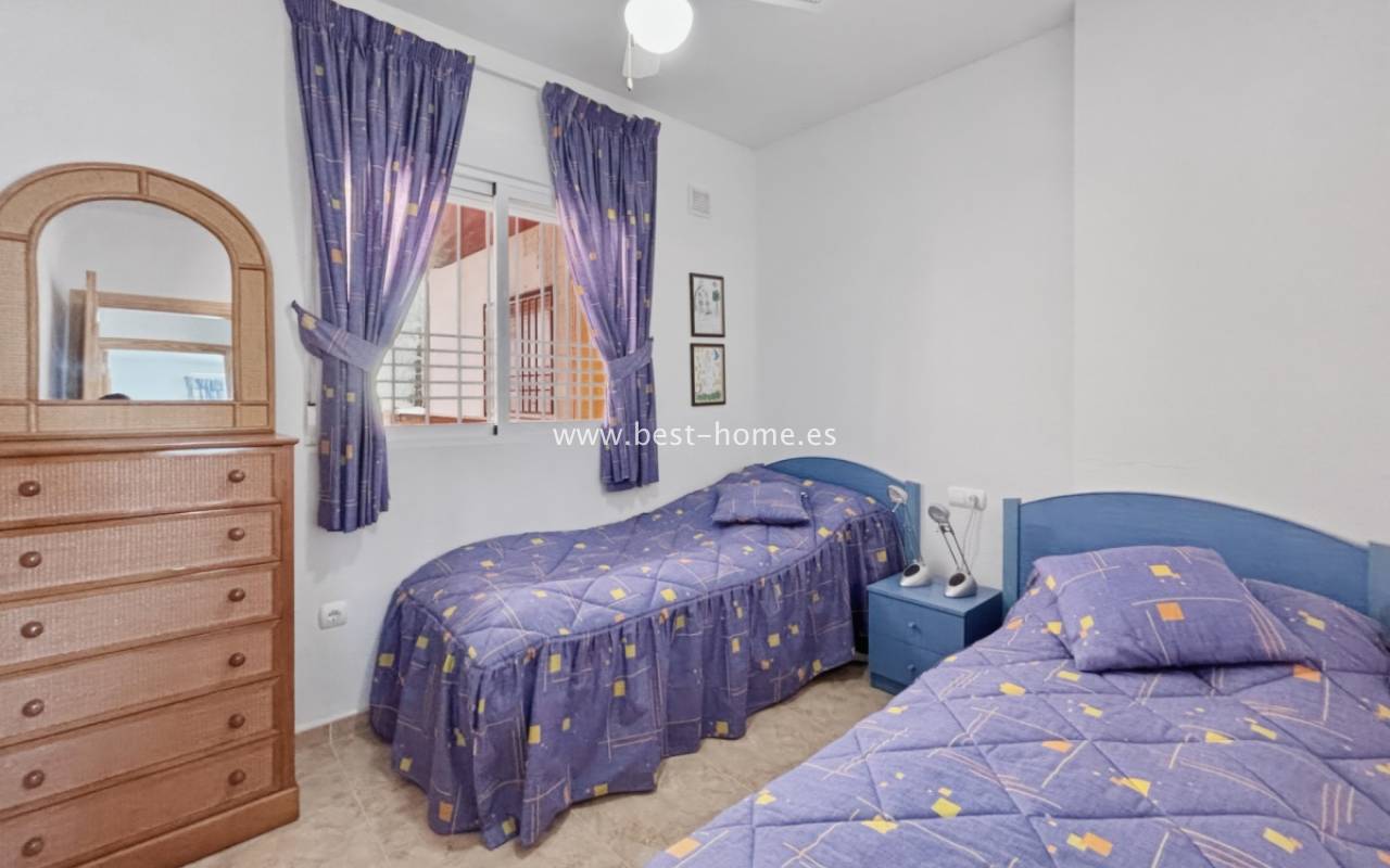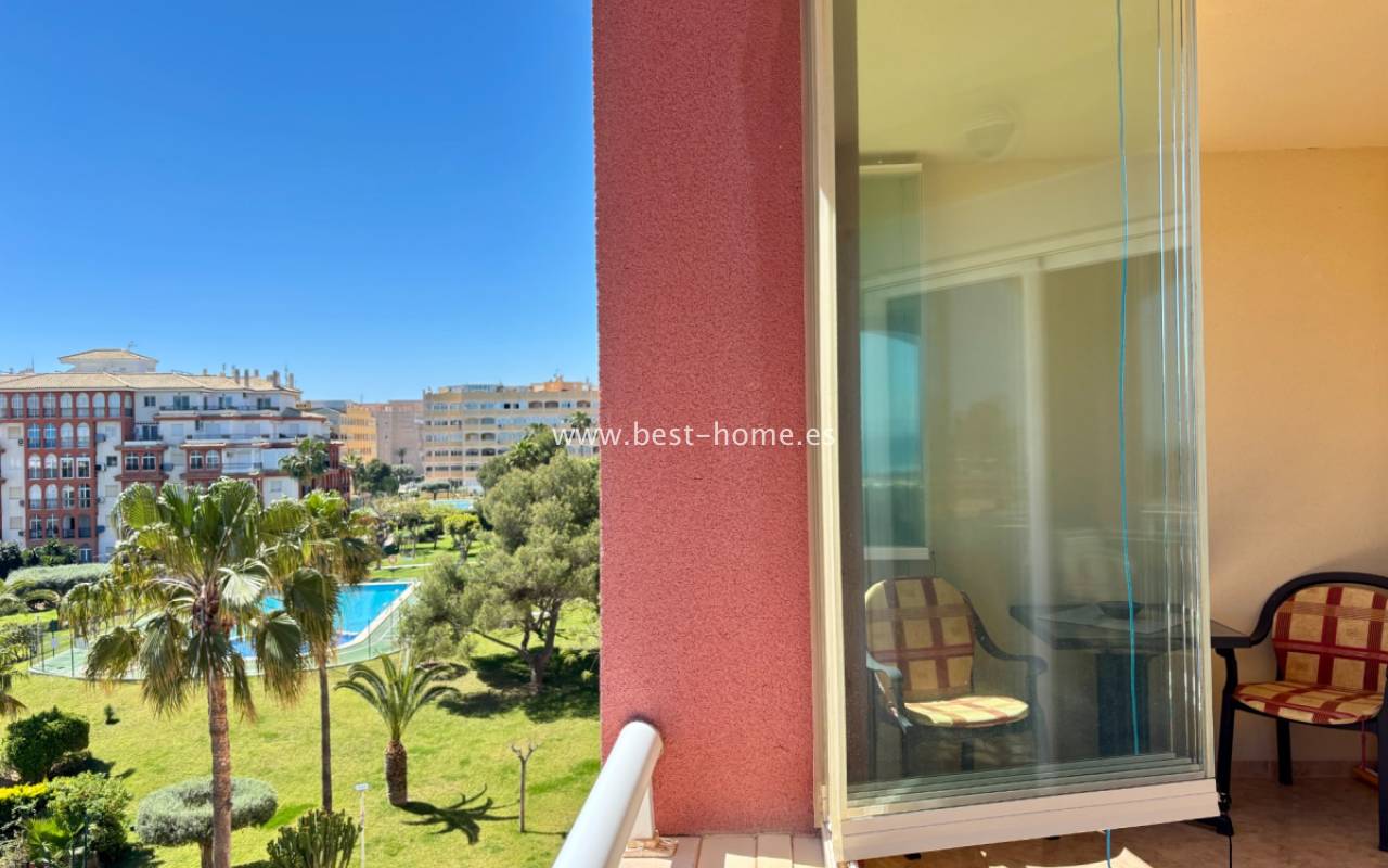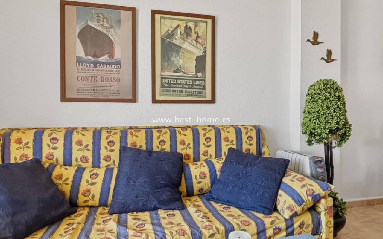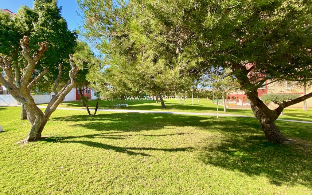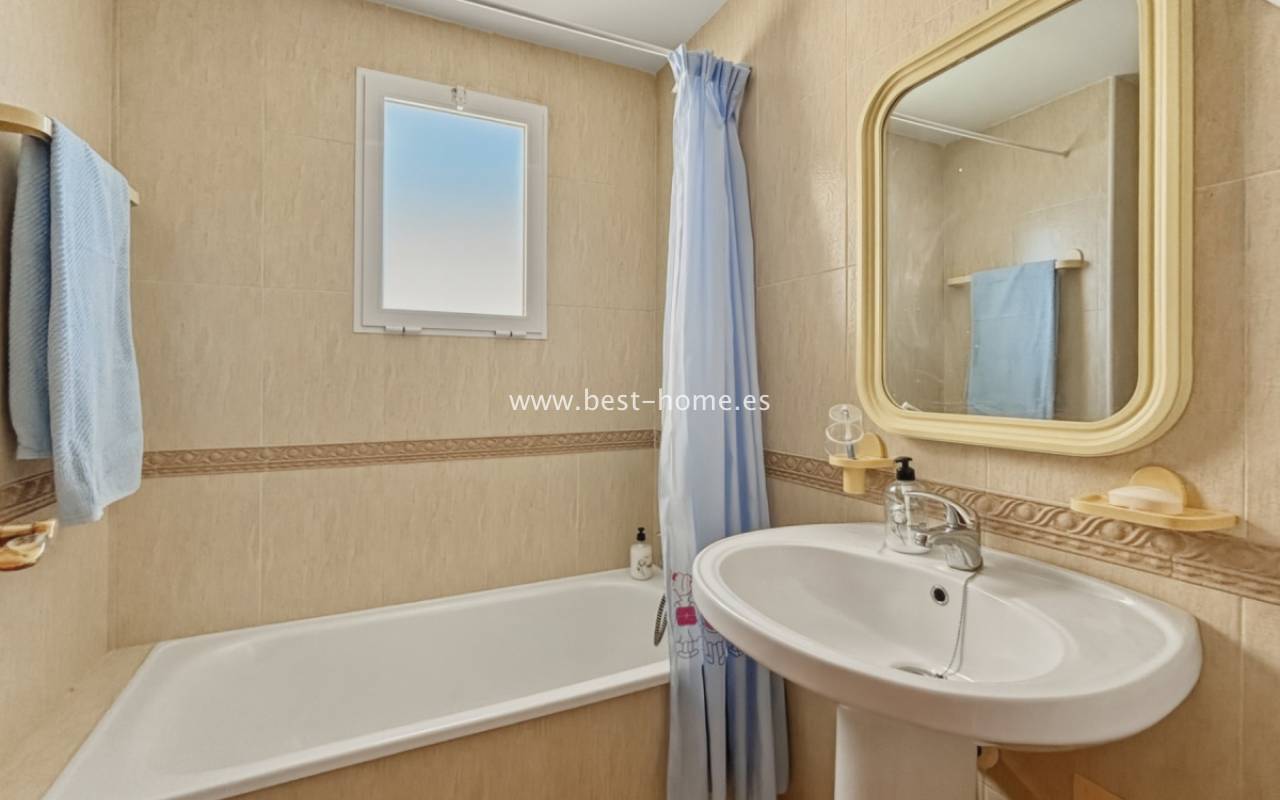 Fantastyczny apartament z zachwycającą panoramą Morza Śródziemnego oraz laguny solnej La Mata. Nieruchomość znajduje się zaledwie 710 metrów od plaży, w otoczeniu pełnej infrastruktury, sklepów, restauracji i usług dostępnych w kilka minut spacerem. Mieszkanie usytuowane jest na czwartym piętrze zadbanego, zamkniętego osiedla z rozległymi terenami zielonymi oraz dużym basenem przeznaczonym dla mieszkańców. Lokal narożny, położony na najwyższej kondygnacji, o ekspozycji południowo-wschodniej, dzięki czemu jest bardzo jasny i słoneczny przez cały dzień. Wnętrze obejmuje nowoczesną kuchnię typu amerykańskiego, w pełni wyposażoną i połączoną z częścią jadalnianą oraz salonem. Z salonu prowadzi wyjście na przestronny taras, z którego rozciągają się imponujące widoki. Taras wyposażono w system przeszkleń, który umożliwia jego zamknięcie lub otwarcie w zależności od pory roku i potrzeb. Dodatkowo w apartamencie znajdziemy dwie dwuosobowe sypialnie, wyposażóą łazienkę z oknem. Budynek posiada windy, a na dachu znajduje się duży taras wspólny, idealny do opalania i podziwiania rozległych widoków na okolicę.