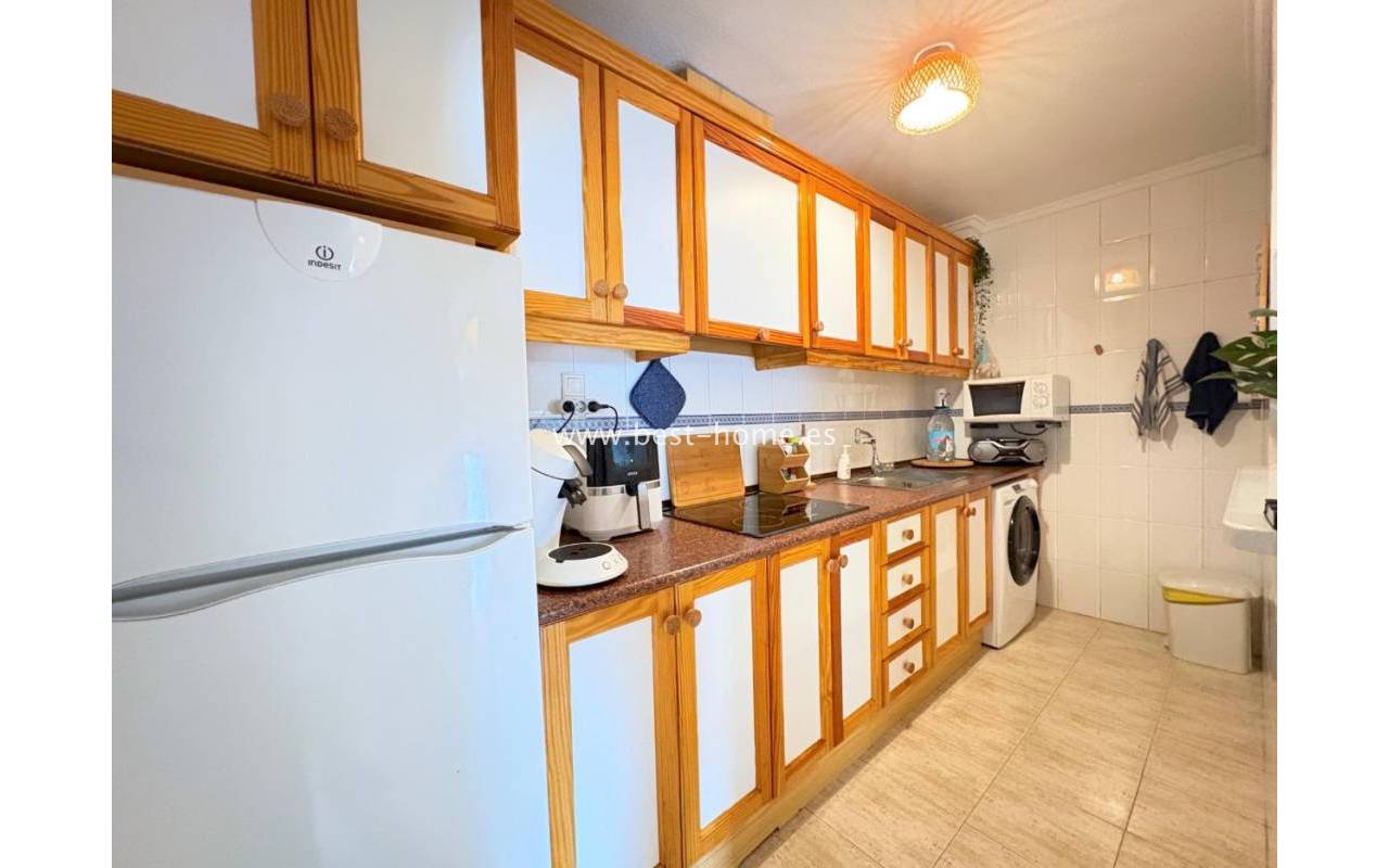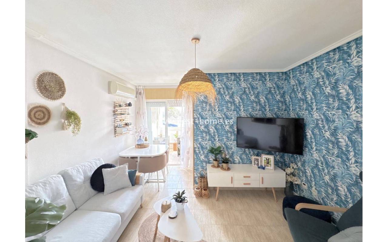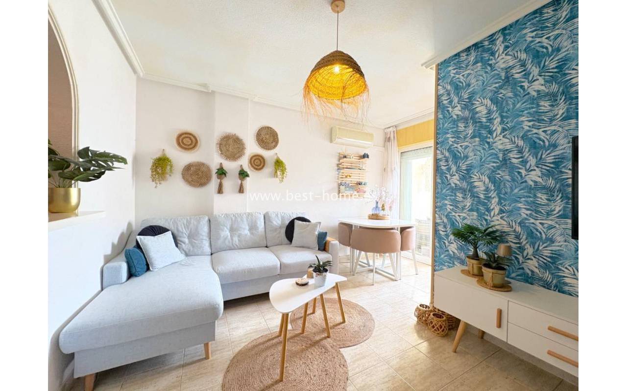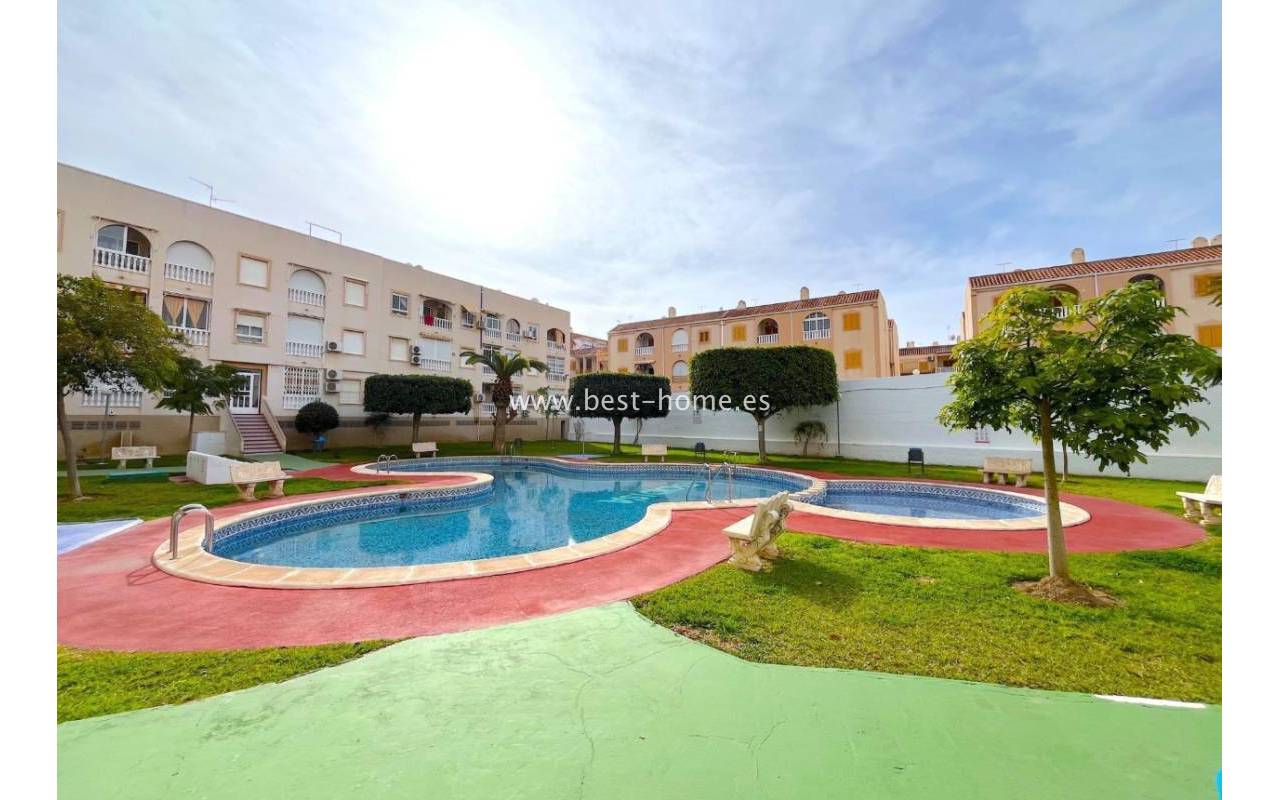 Mieszkanie na parterze położone w atrakcyjnej okolicy, w pobliżu plaży Acequión w Torrevieja. Nieruchomość składa się z dwóch sypialni, jednej łazienki, przestronnego salonu oraz oddzielnej kuchni. Dodatkowym atutem jest niewielki balkon, idealny na poranną kawę. Na terenie osiedla mieszkańcy mają do dyspozycji wspólny basen.