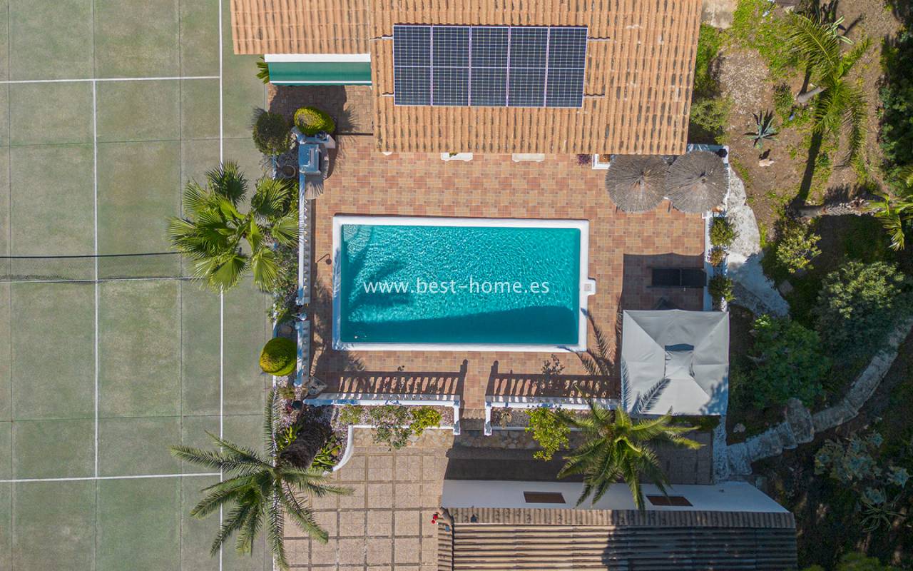 Willa usytuowana jest na przestronnej działce o powierzchni 1220 m2, zapewniającej pełną prywatność oraz liczne miejsca do relaksu na świeżym powietrzu. Do dyspozycji właścicieli pozostaje prywatny basen, kort tenisowy, zadbany ogród oraz tarasy, które pozwalają cieszyć się słońcem przez cały rok.