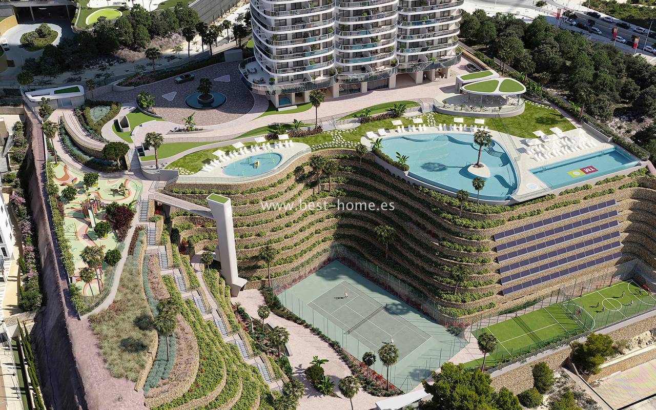 Części wspólne obejmować będą duże baseny dla dorosłych, podgrzewany basen, basen dla dzieci z kącikiem zabaw, jacuzzi i zonę chill-out, kawiarnię oraz miejsc do gry w bilard i lotki. Ponadto pomieszczenia przeznaczone do wypoczynku dla całej rodziny, takie jak kino, lobby, pokój klubowy dla dzieci z przestrzenią wewnętrzną i zewnętrzną do organizowania imprez oraz pokój gier wideo z najnowszą technologią. Dodatkowo odnajdziemy korty do tenisa i padel, a także z wielofunkcyjne boisko. Na 21 piętrze będą dwie w pełni wyposażone siłownie, sala do yoga i pilates, oczywiście z w widokami na morze. Na 22 piętrze będzie zona spa z 3 jacuzzi, z podgrzewanym basenem, miejscem do relaksu i masażu, podgrzewane leżanki, sauna fińska, łaźnia turecka, prysznice sensacyjne, a wszystko otoczone zielenią. Dla mieszkańców na 63 najwyższym piętrze będzie taras (250 m2) z barem, miejscami do odpoczynku i spotkań z przyjaciółmi, hokerami i fantastycznymi panoramicznymi widokami na morze i góry. Dodatkowo będzie odnajdziemy zonę z teleskopami do obserwacji gwiazd.