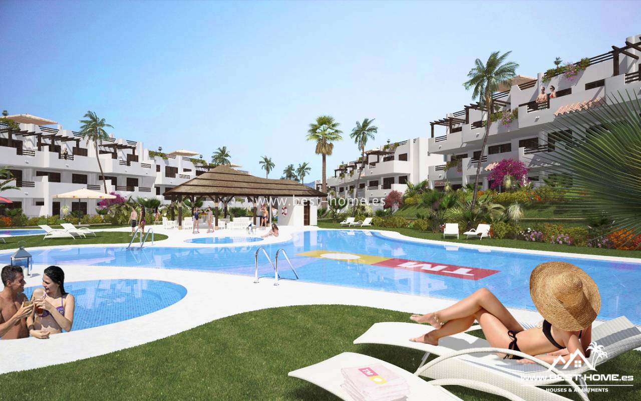 Polub naszą stronę na facebooku. Codziennie ciekawe oferty, zapraszamy. Kolejna IV już faza ogromnej inwestycji najlepszego w kraju dewelopera. Projekt mieści się między błękitnym, ciepłym morzem, a górami, tuż przy centrum handlowym Mar del Pulpi z restauracjami, supermarketem, sklepami i siłownią, 2 km od miasteczka San Juan de los Terreros, gdzie odnajdziemy wszystkie niezbędne serwisy do codziennego życia, a także kilka minut jazdy samochodem do miasta Aguilas, które oferuje kina, duże centrum handlowe, wieżę widokową z XVI wieku, czy deptaki i uroczą starówkę. Projekt składa się z pięknych białych domów w zabudowie szeregowej, które podzielone są na apartamenty: na parterze z ogródkiem, na górze z prywatnym tarasem na dachu (solarium) i środkowe z dużym tarasem. Otoczone pięknymi, zadbanymi ogrodami (o pow. 5.000 m2) z mnóstwem śródziemnomorskiej roślinności, oczkami wodnymi, basenami, klimatyzowanymi jacuzzi, barem i placem zabaw dla dzieci. Każdy apartament wykończony na najwyższym poziomie, posiadać będzie preinstalację centralnej klimatyzacji, kompletne łazienki oraz zabudowę kuchenną. Bez żadnych dodatkowych opłat można spersonalizować każdy apartament według własnych upodobań i gustu. W cenę wliczone jest również miejsce parkingowe. W zależności od usytuowania apartamentu dysponować one będą niesamowitymi widokami na morze. góry lub piękne zony komunalne. Nie zwlekaj! Poprzednie fazy wyprzedały się błyskawicznie! I Ty zostań właścicielem pięknej nieruchomości w zawsze słonecznej Hiszpanii. Skontaktuj się z nami już dzisiaj i umów się na oglądanie! Zakochasz się od pierwszego wejrzenia...jak my:) Apartament w San Juan de los Terreros