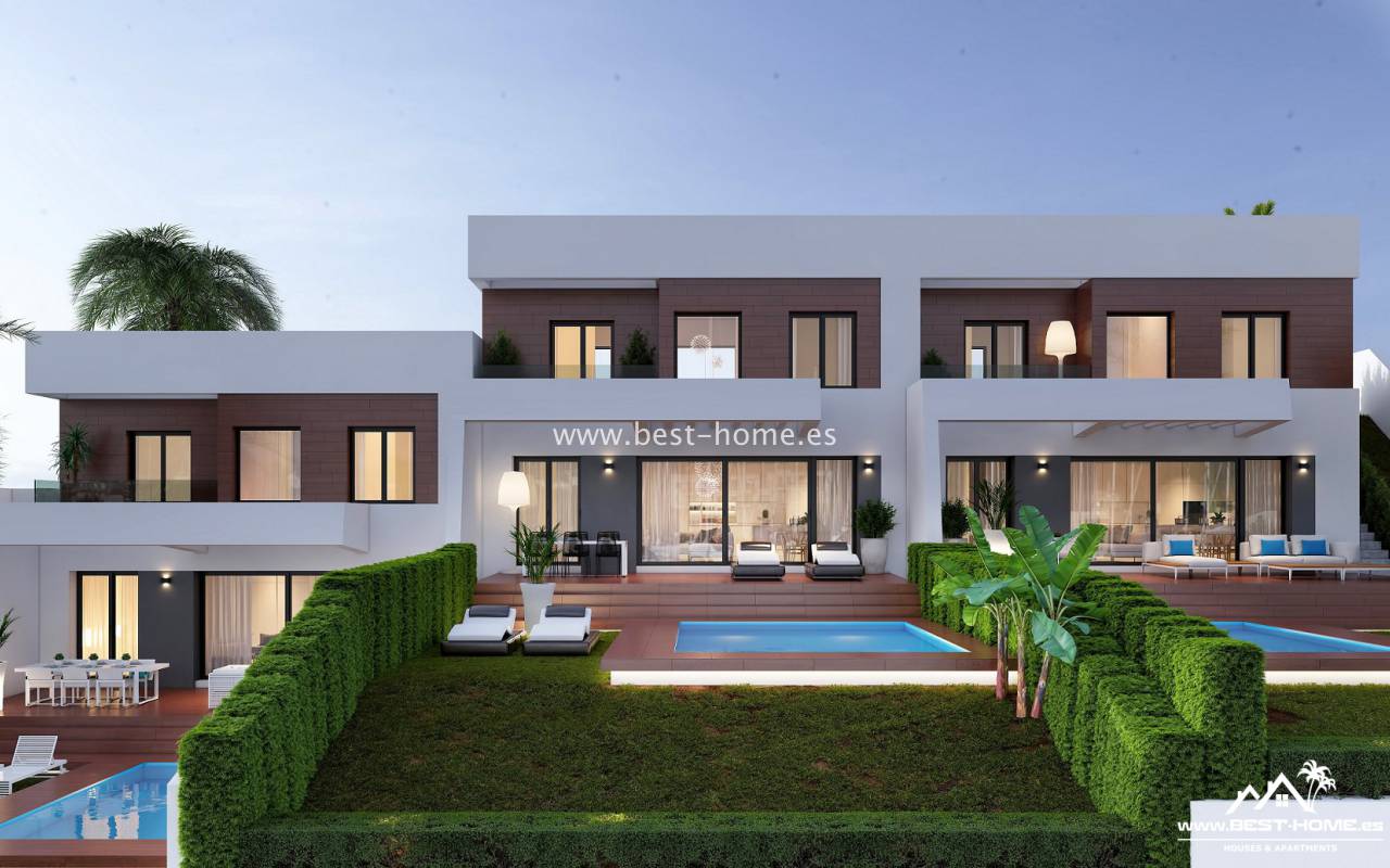 Nowe bardzo atrakcyjne domy w zabudowie szeregowej, budowane są dobrej i spokojnej okolicy na obrzeżach miasta Benidorm. Nieruchomości o powierzchni 112 m2 składać się będą dwóch pięter. Wejście do domu będzie przez 1 piętro, gdzie odnajdziemy dwie, bardzo przestronne sypialnie z łazienkami en-suit. Z każdego pomieszczenia rozciągać się będą cudowne widoki na wieże Benidorm i wybrzeże. Schodami zejdziemy na parter do przestronnego i jasnego salonu połączonego z kuchnią i jadalnią, na tym poziomie znajdzie się trzecia sypialnia i łazienka. Z salonu przez duże, przesuwne okna wyjdziemy na taras i do ogrodu z prywatnym basenem (powierzchnia ok. 24 m2). Domy budowane na działkach o powierzchniach od 285 m2 do 395 m2. Bardzo wysoka jakość wykończenia, w cenie zabudowa kuchenna, wykończone łazienki, pre-instalacja centralnej klimatyzacji, prywatny basen i miejsce parkingowe. W zaledwie 5 minut dojedziemy do miasta Benidorm, cudownych plaż: Levante, Poniente i Cala de Finestrat. Ceny od 305.000 € do 359.000 €. Dostępne tylko 2 domy w cenie 359.000 €